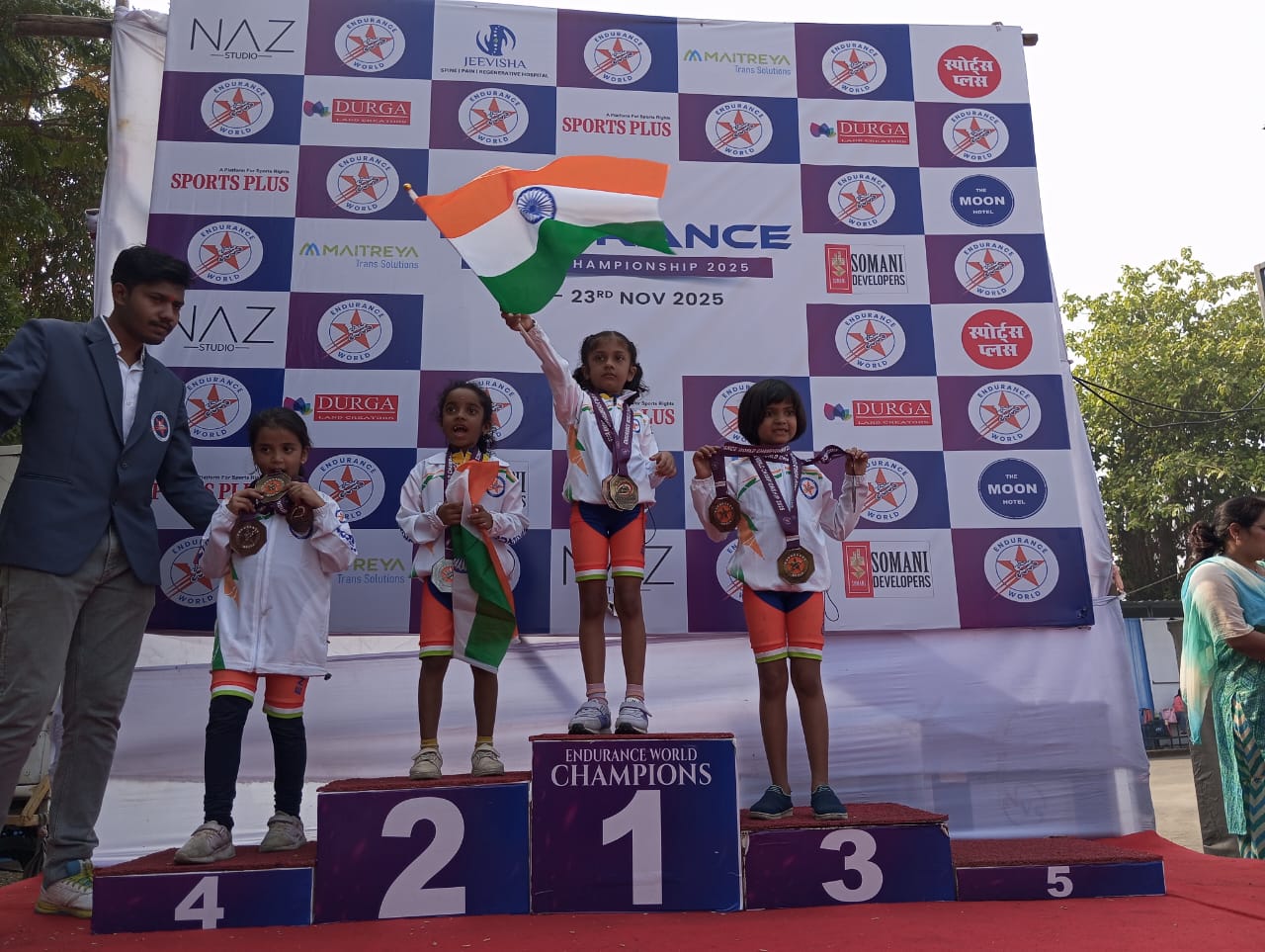 Sanskruti Naibagkar proudly represented India at the Endurance World Championship 2025 in Pune, securing first place with a gold medal and two bronze medals.