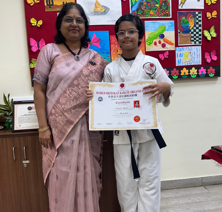 ..... and here Aarya Pandit of class 6D has done it again!!! The school is extremely proud of her as she has reached the greater heights by winning a Gold in the CISE Regional Taekwondo Competition. It is indeed a proud moment for all of us as she is now selected for the CISCE National Level to be held in Ahmedabad.Congratulations Aarya on your achievement ๐ ๐ All the best for the National Level.