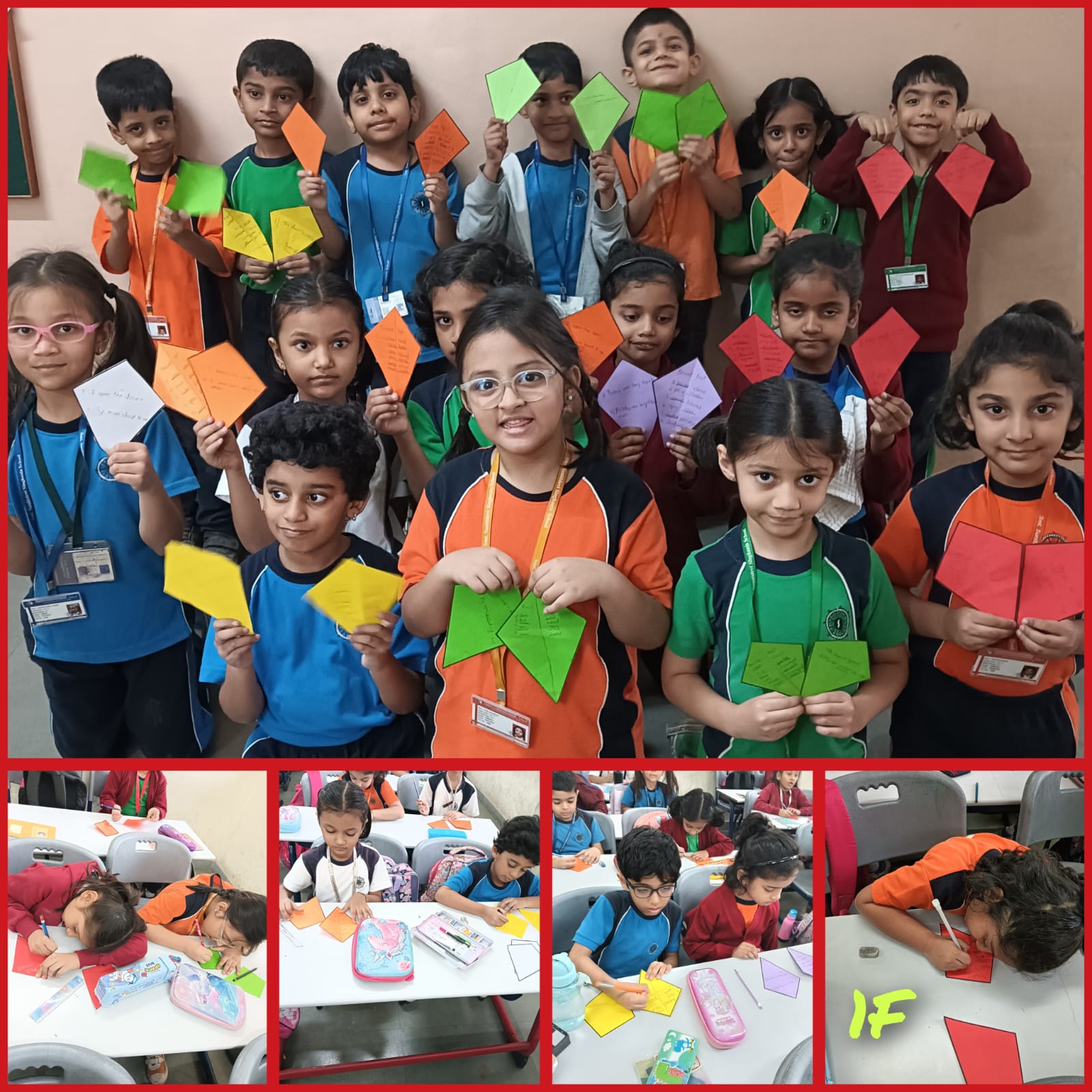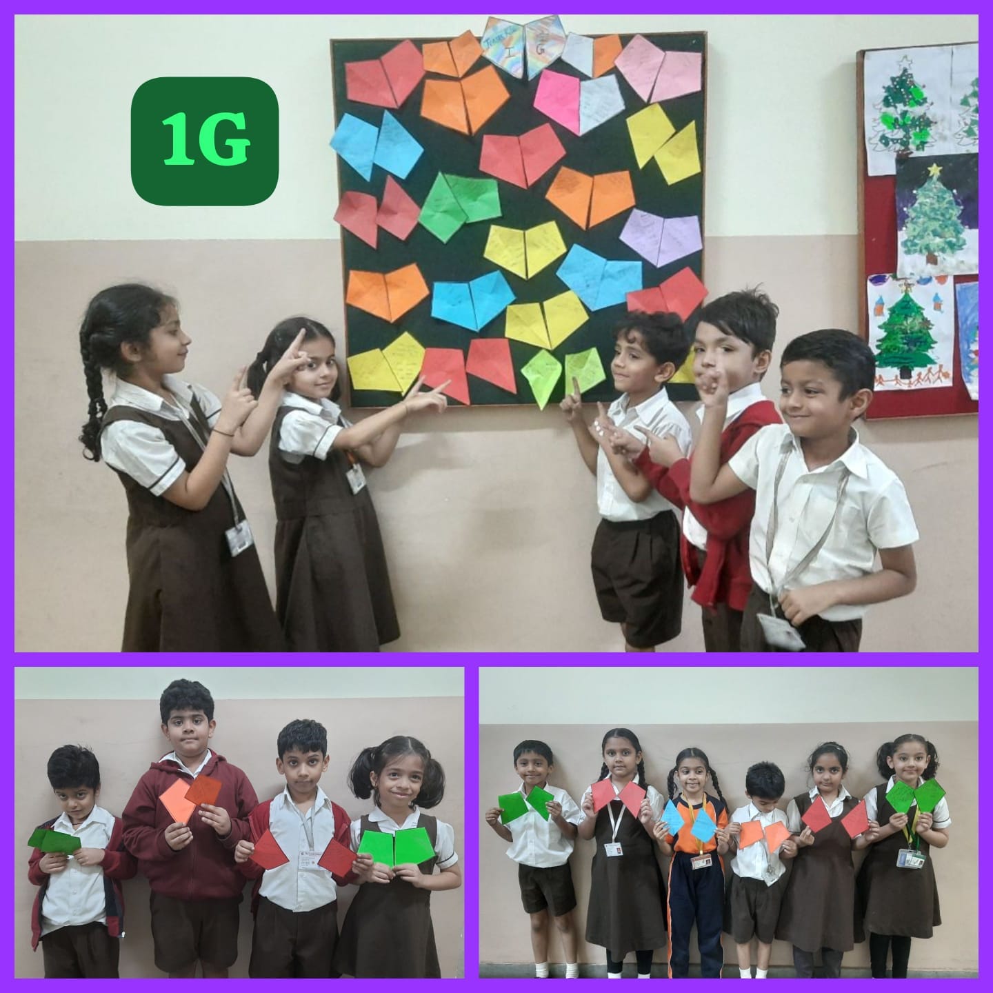 I flew my kite up in the sky Today I watched it flutter by. I built a kite with string so bright Now I fly it with all my might. In a creative activity, Grade 1 students used kite cutouts to explore the concept of tenses. They wrote words and simple sentences on the kite, using present and past tenses. The children had fun connecting their artwork with language skills, understanding how actions change over time. This hands-on learning experience allowed them to practice tenses in an engaging and meaningful way, while also expressing their creativity!