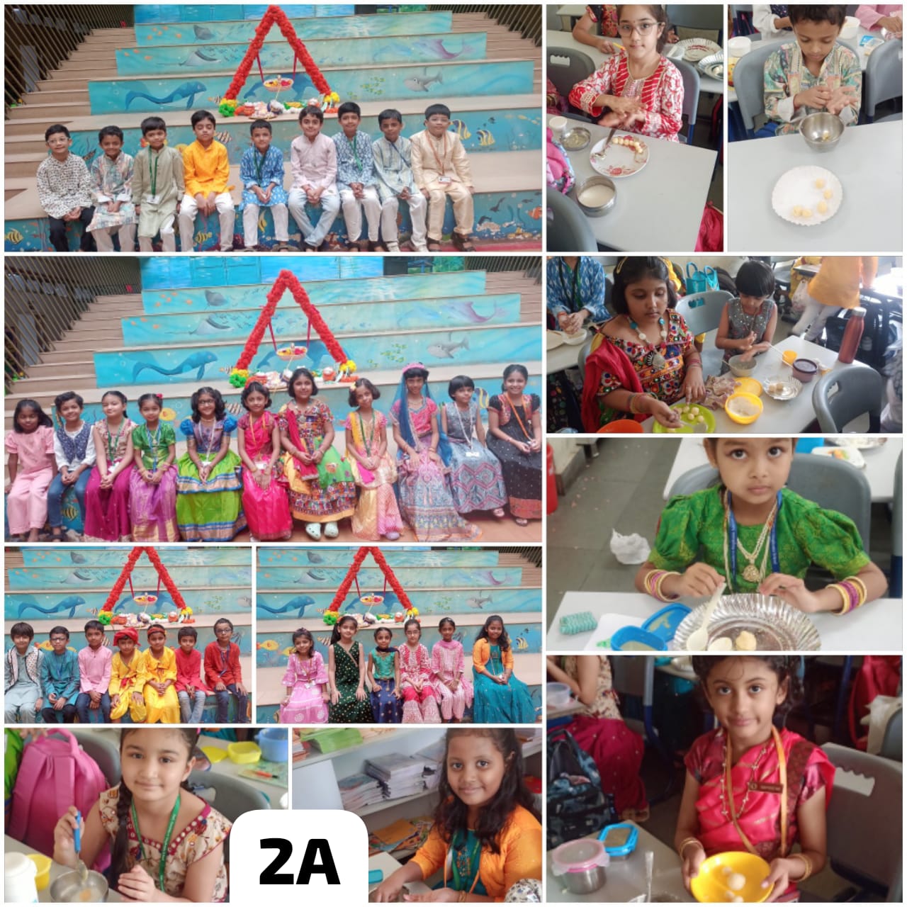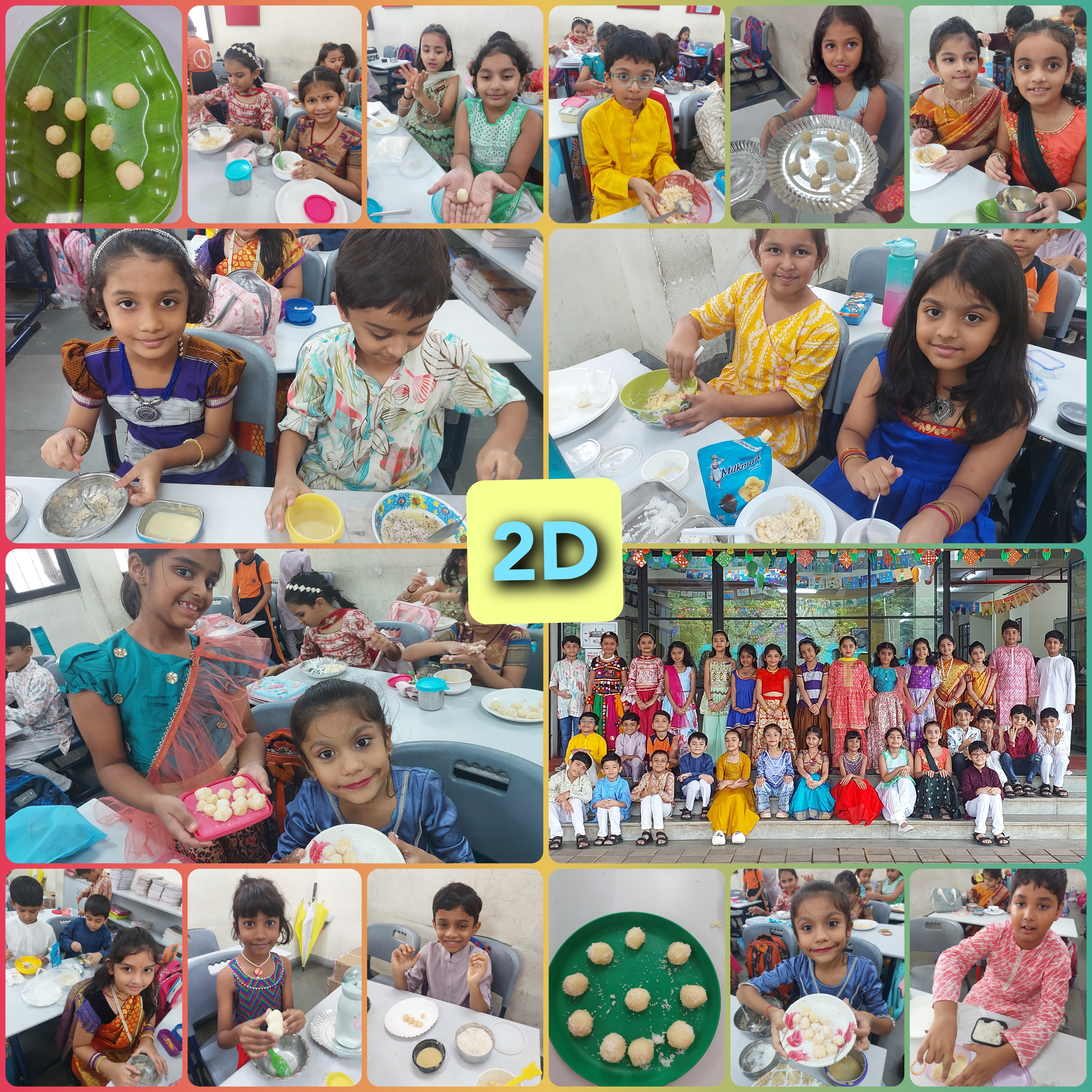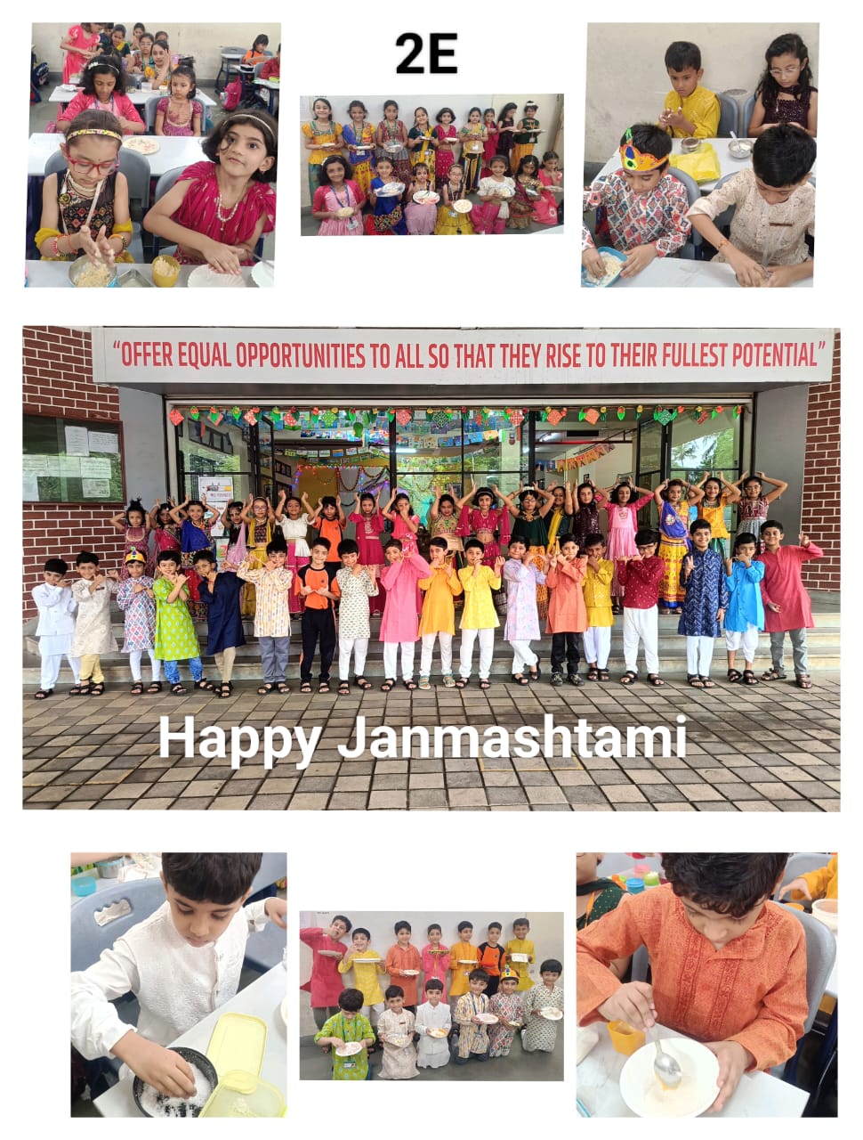 In colorful attire, so bright and grand, The students of Grade 2 took a joyful stand. With smiles so wide and spirits high, They celebrated Krishna with gleaming eyes. Laddoos they made with little hands, Coconut and milkmaid—what sweet plans! Spoons and bowls, all set in place, They mixed with love, at their own pace. Traditional dresses, twirls, and grace, A festive spirit filled the space. Janmashtami fun with laughter and cheer, Memories to hold so precious and dear.