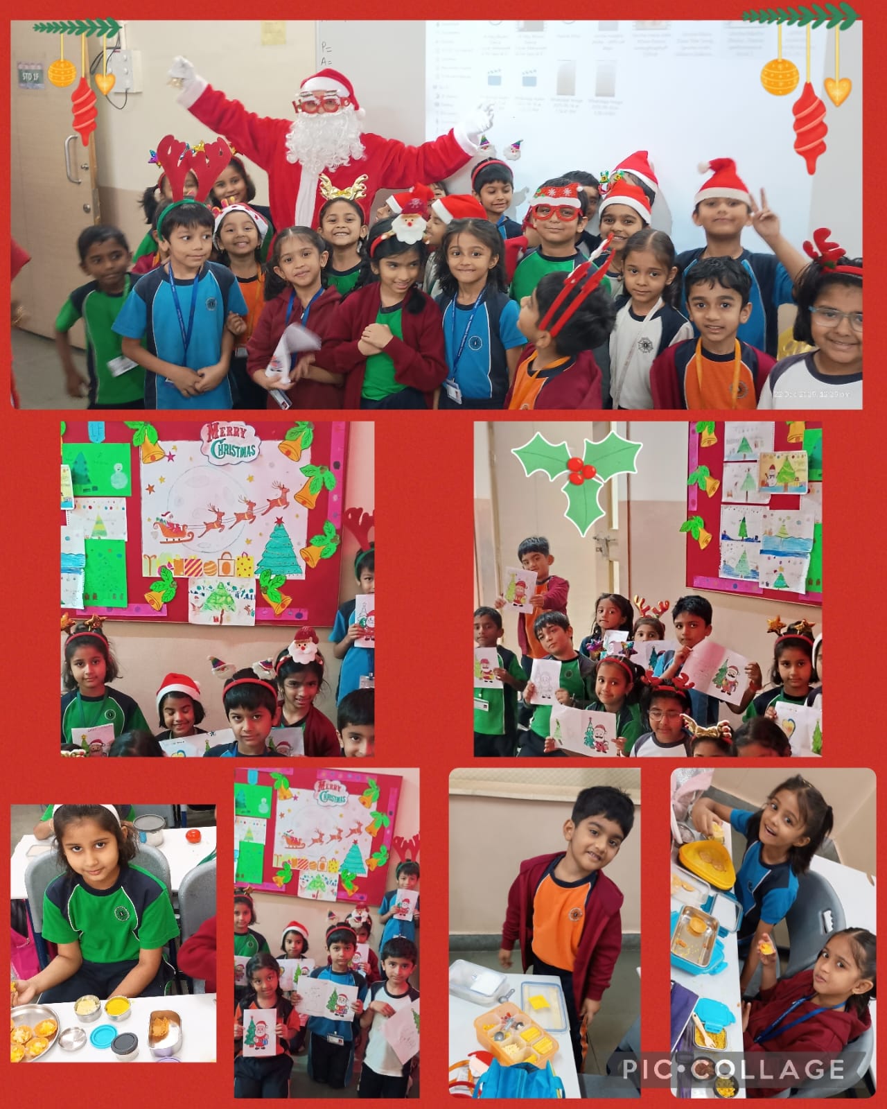 Dear Under twinkling lights so bright, Christmas filled our hearts with delight. Songs and laughter filled the air, Joy and magic everywhere. We celebrated Christmas with great joy and excitement. Our Grade 1 students came to school wearing colourful and cute Christmas head gears. The classrooms were filled with Christmas cheers and the children were very excited. Students enjoyed cold cooking and making delicious yogurt parfait canapés, which made the celebration even more fun. 🎅🏻Santa Claus made a cheerful appearance and spread happiness all around. Everyone danced happily to joyful Christmas carols, clapping and smiling with excitement. It was a fun-filled and memorable day for all the students, full of laughter, music, and Christmas cheer.