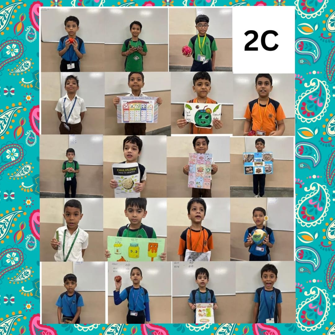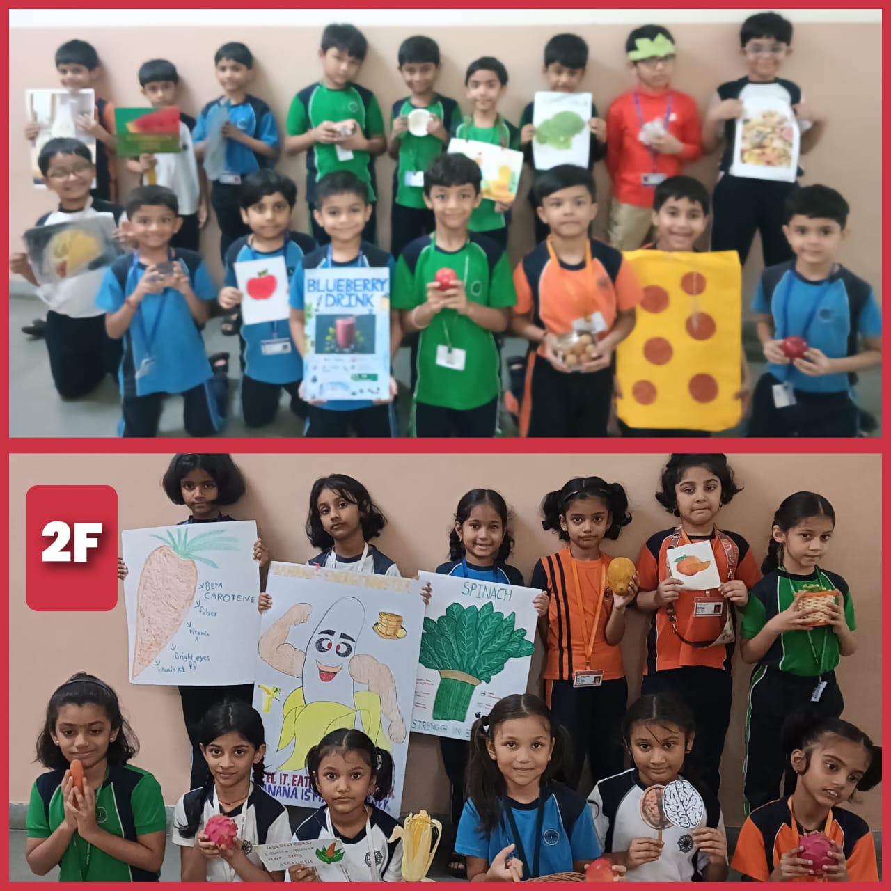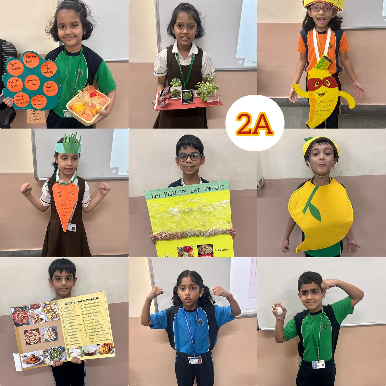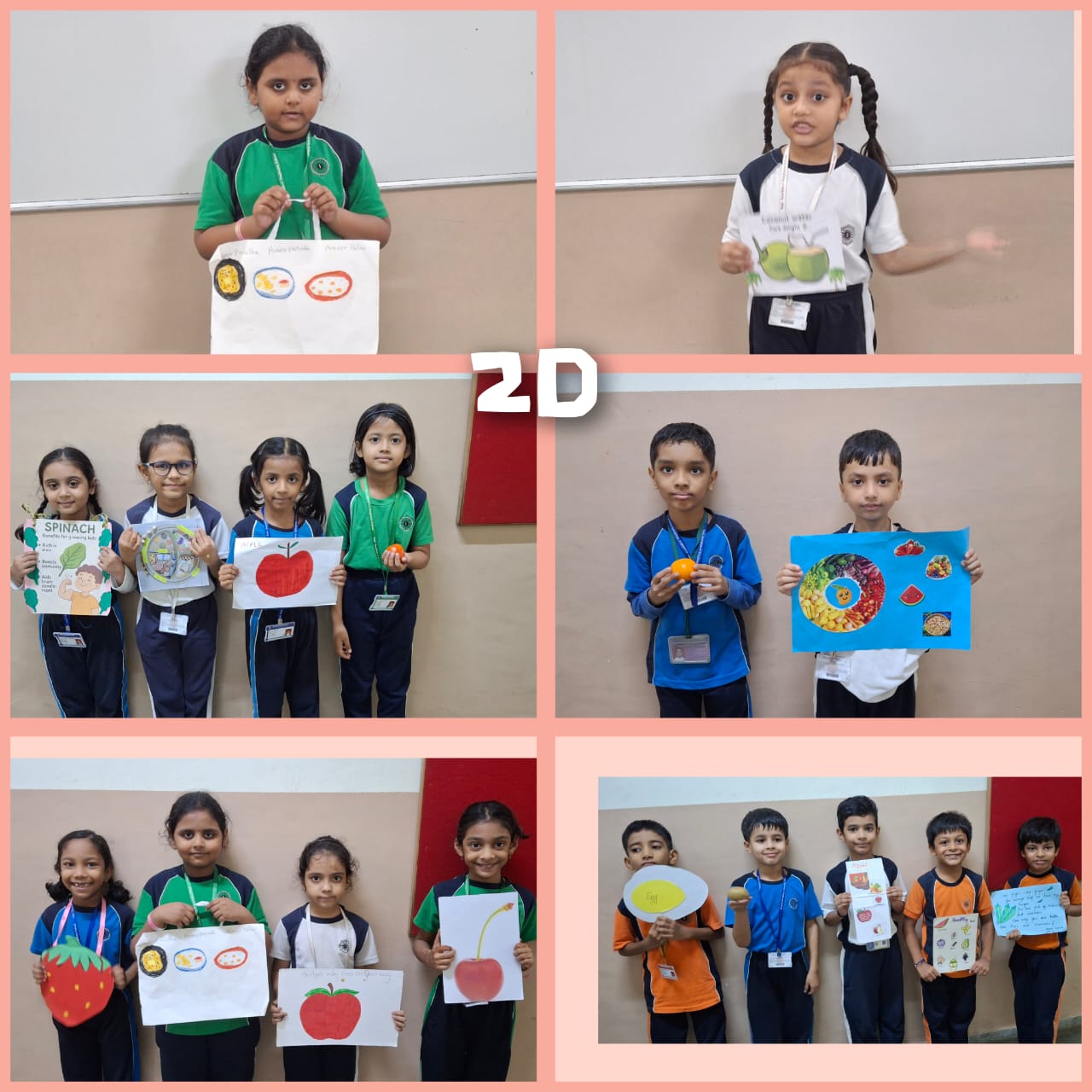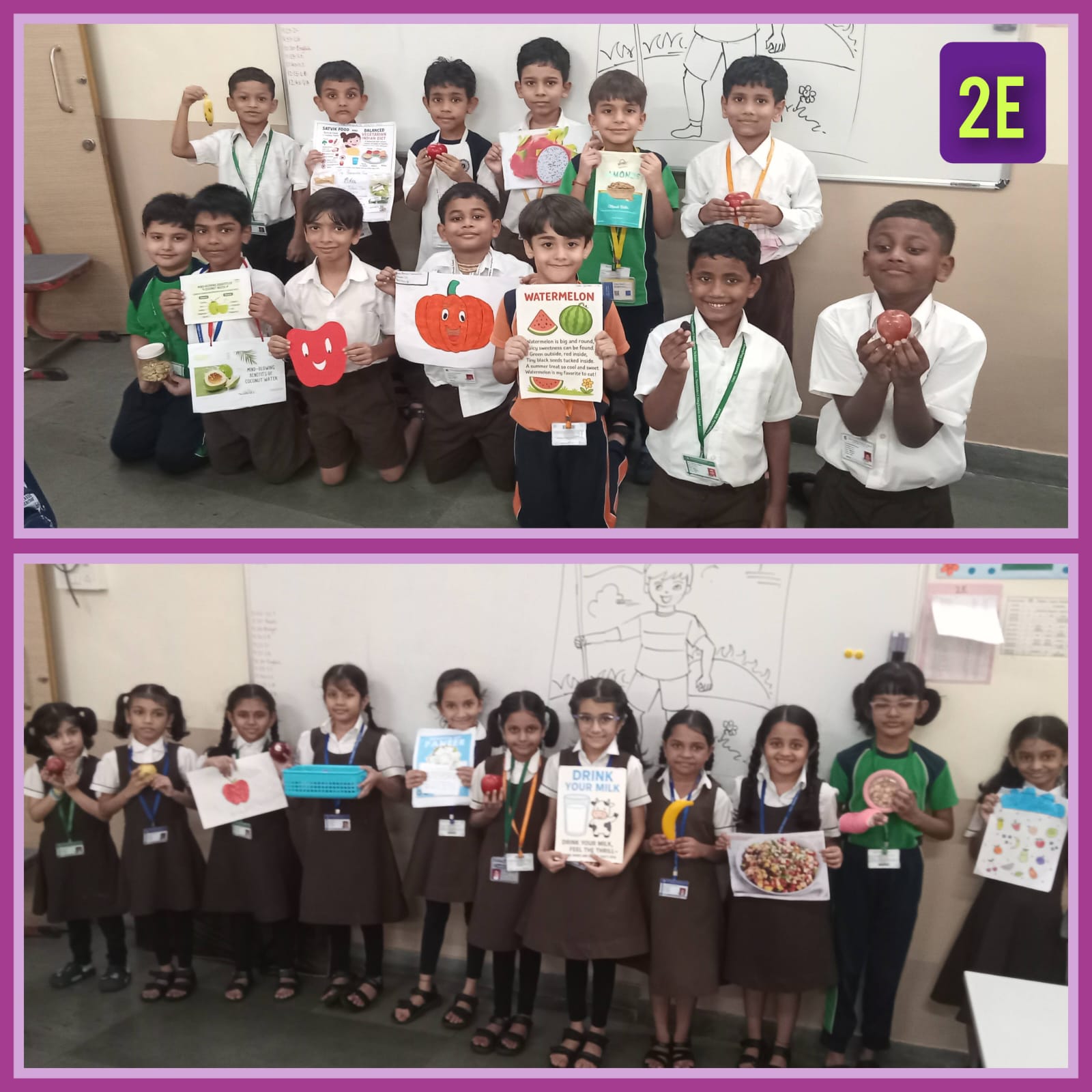 Show and Tell Activity – Topic: Healthy Food As part of our efforts to promote healthy habits and improve communication skills, a Show and Tell activity on the topic “Healthy Food” was conducted for Grade 2 students. The aim of the activity was to help children understand the importance of eating nutritious food and to encourage them to speak confidently in front of their classmates. Each student came prepared to talk about a healthy food item of their choice, such as fruits, vegetables, milk, dry fruits, and home-cooked meals. Children used props like real fruits, drawings, and food models to make their presentations more interesting. They also showed their creativity by presenting catchy jingles and slogans about healthy eating, which added fun and excitement to the session. They shared how these foods help us stay strong, grow well, and keep our body safe from illness. It was heartening to see how well they understood the value of healthy eating at such a young age. The activity was a fun, interactive, and educational experience that helped students become more aware of the food they eat and motivated them to make healthier choices every day.