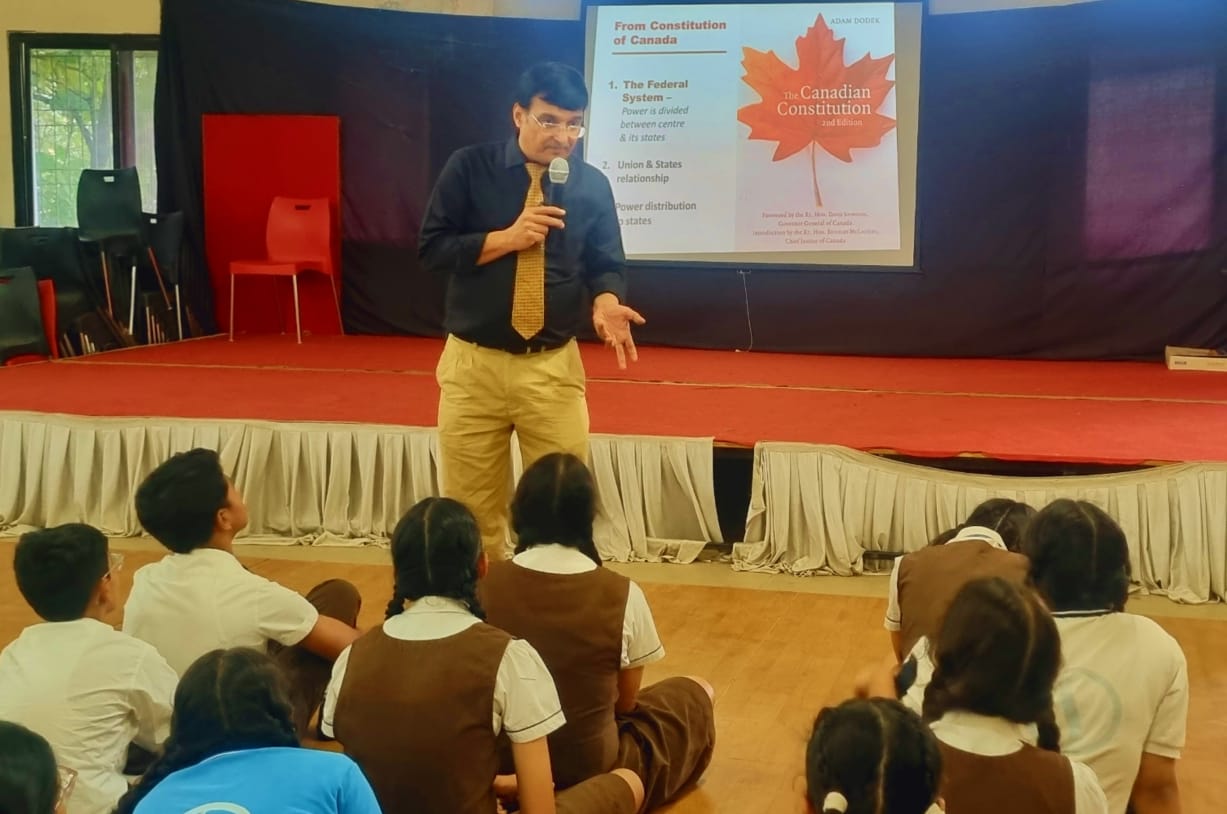 Constitution Day Celebration at Sunitidevi Singhania School for Std. 8 On Wednesday, 27th November 2024, our school commemorated Constitution Day with a thought-provoking program. We were honored to have Dr. Lakshmikant Kasat, a renowned pediatrician, as our esteemed guest speaker. Dr. Kasat delivered an informative address, shedding light on the formation of the constituent assembly and the drafting of the Indian Constitution. His engaging presentation captivated the audience, comprising students and faculty members. The session proved to be an enriching experience, imparting valuable knowledge about the Constitution and its significance. This event reinforced our commitment to fostering civic awareness and responsibility among our students. The students also thoroughly enjoyed and appreciated the opportunity to learn about our constitution. We extend our heartfelt gratitude to Dr. Kasat and his team for sharing their expertise and time with us.