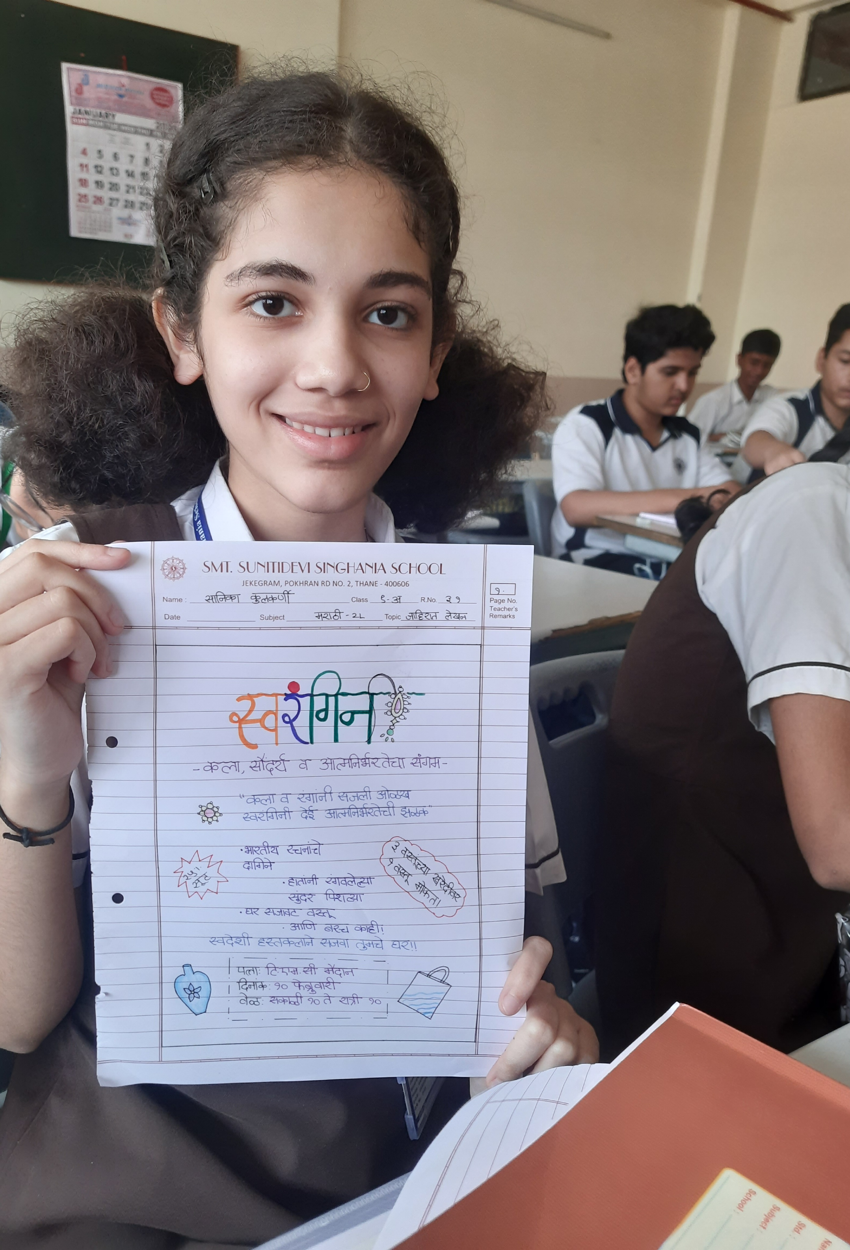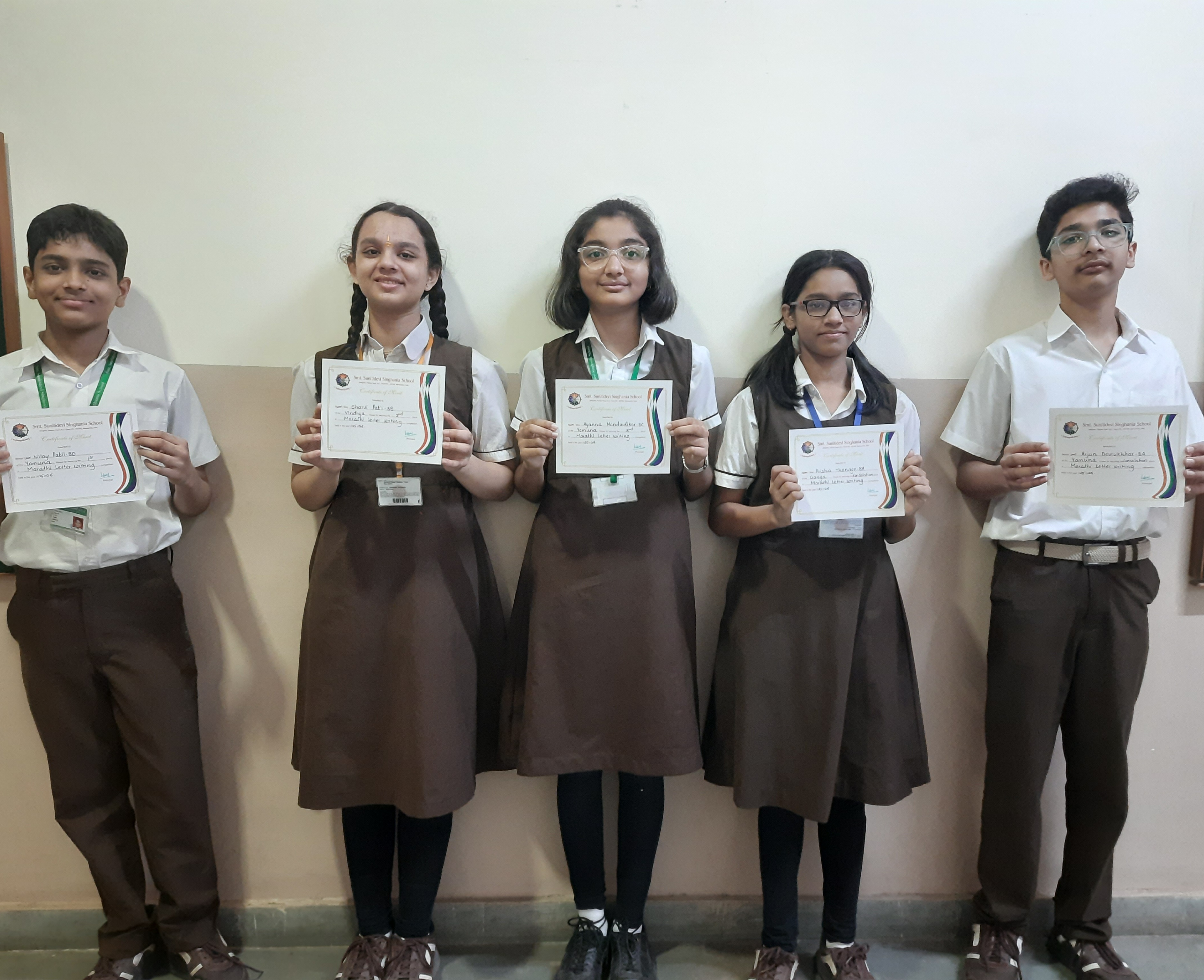 या दिवसाचे औचित्य साधून श्रीमती सुनितीदेवी सिंघानिया शाळेत विविध स्पर्धांचे आयोजन करण्यात आले होते. इयत्ता ६ वीच्या विद्यार्थ्यांसाठी निबंध लेखन स्पर्धा आयोजित करण्यात आली होती. विद्यार्थ्यांनी प्रस्तावना, भाषाशैली, सुसंगती, सर्जनशीलता आणि प्रभावी मांडणीचा उपयोग करत दिलेल्या विषयांवर तर्कशुद्ध विचारांनी निबंध लेखन केले. त्यांच्या लेखनातून मराठी भाषेप्रती असलेली जिव्हाळ्याची भावना स्पष्टपणे जाणवली. इयत्ता ७ वीच्या विद्यार्थ्यांसाठी कथालेखन स्पर्धा घेण्यात आली. विद्यार्थ्यांनी कल्पकतेचा प्रभावी वापर करून रंजक, अर्थपूर्ण व मूल्याधिष्ठित कथा लिहिल्या. कथांमधून विद्यार्थ्यांची भाषिक पकड, विचारसंपन्नता व सर्जनशीलता प्रकर्षाने दिसून आली. इयत्ता ८ वीच्या विद्यार्थ्यांनी पत्रलेखन स्पर्धेत विषयाला अनुसरून प्रारूप, भाषाशैली, सुसंगती आणि सर्जनशीलतेचा योग्य उपयोग केला. इयत्ता ९ वीच्या विद्यार्थ्यांनी जाहिरात लेखन स्पर्धेत सर्जनशीलता, ब्रॅंडचे नाव, ग्राहक आकर्षक घोषवाक्ये, सामाजिक संदेश आणि सहाय्यक साहित्याचा उपयोग करत दिलेल्या विषयांवर मनोवेधक जाहिराती तयार केल्या.