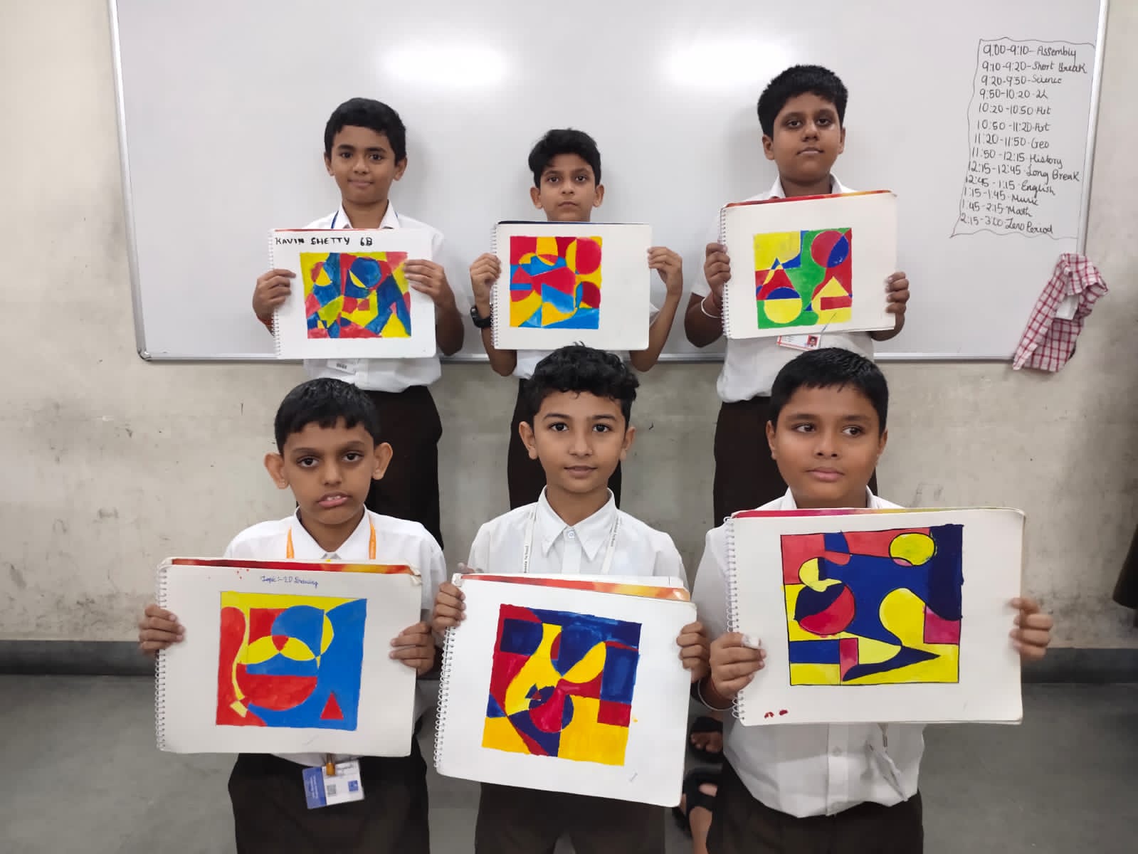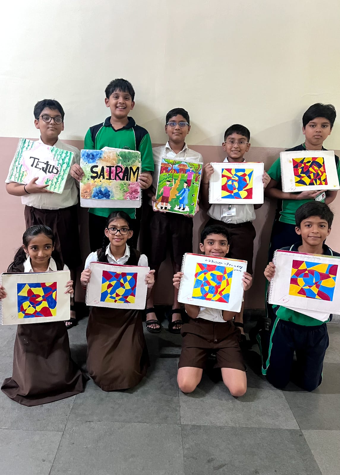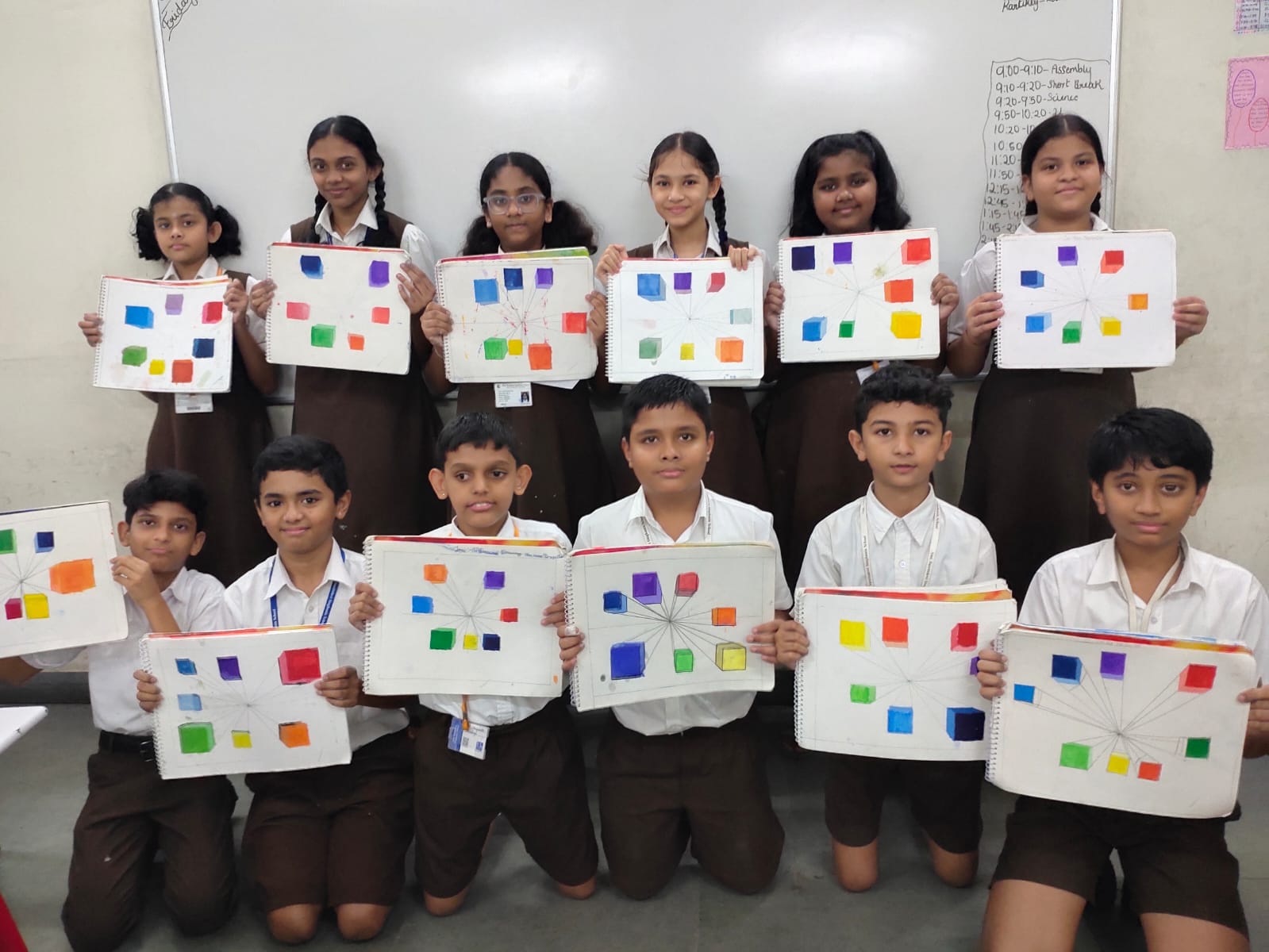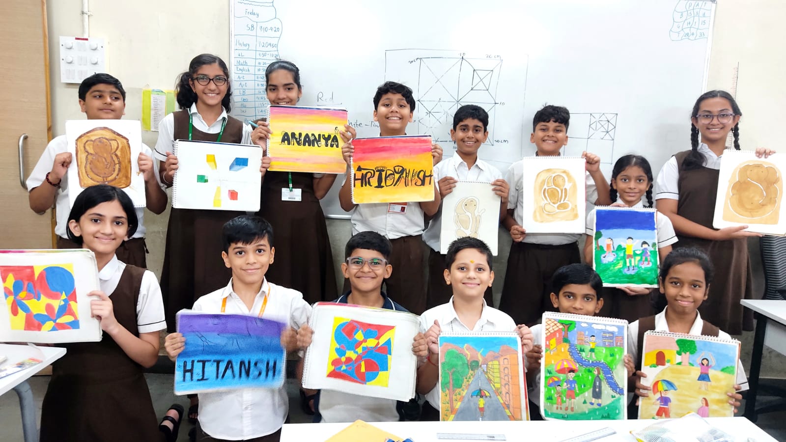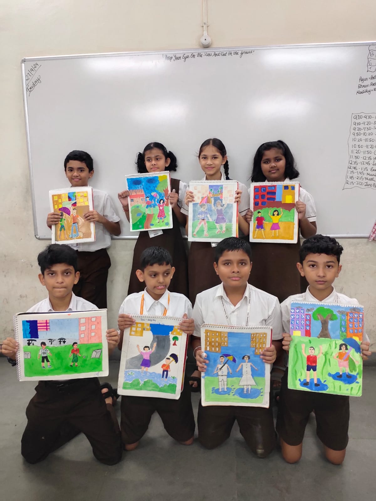 Class 6 students were engaged in various art activities that nurtured their creativity. They began by designing nameplates using silhouette painting, learning to create impactful images through simple shapes and contrasts. They then explored 2D designs understanding how the basic hues can be combined to produce vibrant and expressive artwork. The students also learned one-point perspective, a technique that added depth to their drawings, making them appear more realistic. To wrap up their artistic journey, they created memory drawings inspired by the rainy season, capturing their experiences in colorful and imaginative scenes. These activities were both enjoyable and educational, helping the students develop essential art skills while expressing their creativity.