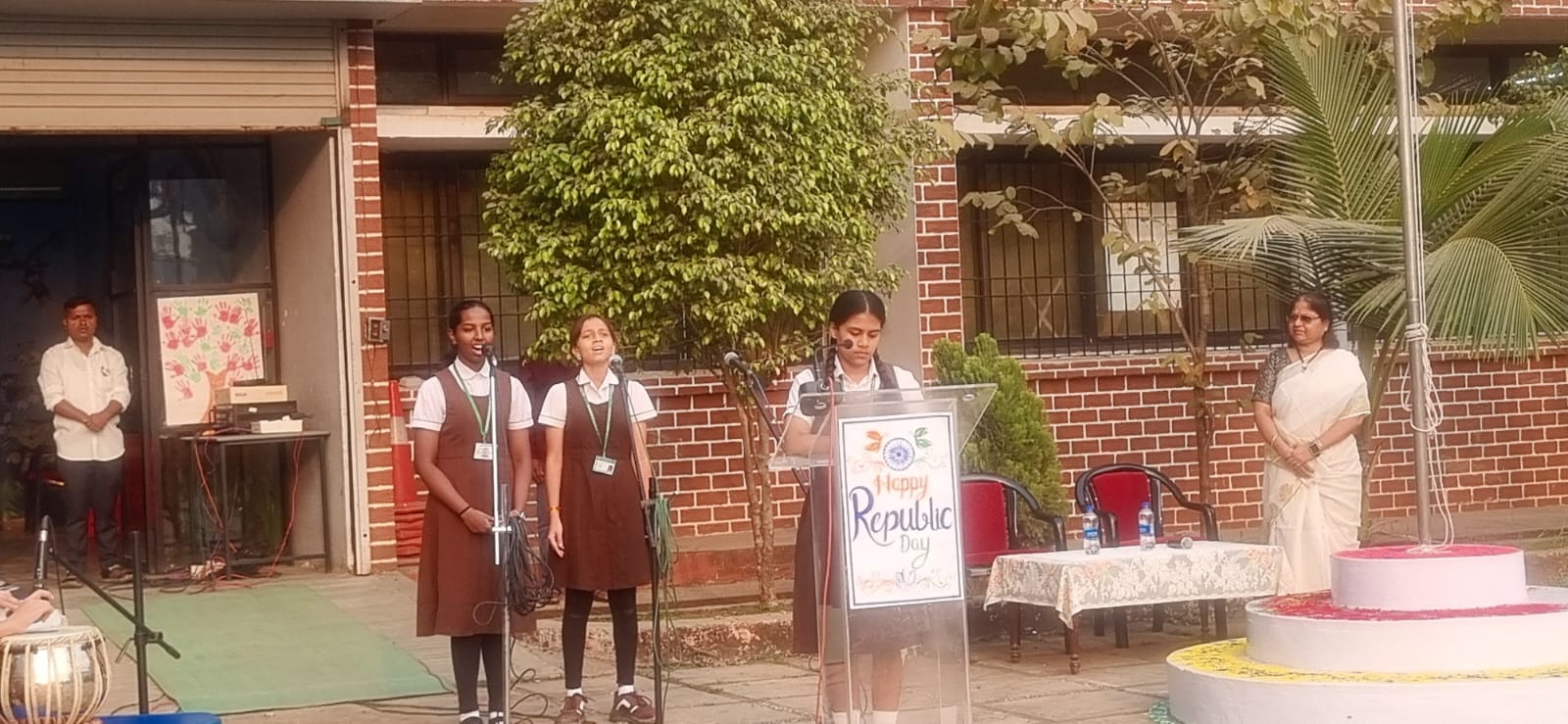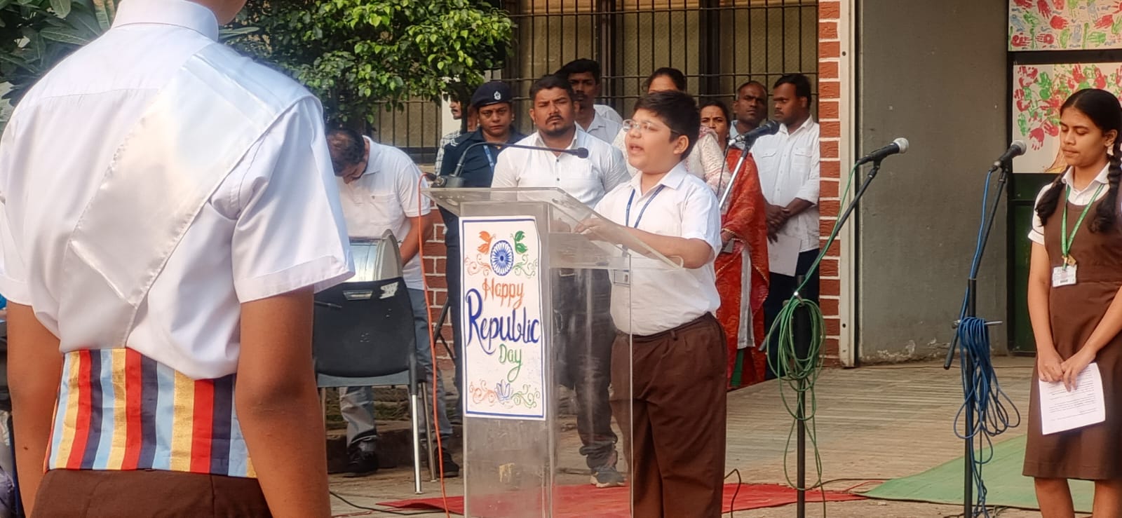 Smt. Sunitidevi Singhania School celebrated Republic Day with great enthusiasm and a deep sense of patriotism. The celebration began with a dignified march past by the Senate members, setting a proud and respectful tone for the occasion. The programme featured a series of engaging performances by students, including patriotic songs and meaningful speeches that reflected the importance of the day and the values enshrined in the Constitution of India. Their heartfelt presentations resonated with the audience and added warmth to the celebration. Addressing the gathering, the school’s Principal, Mrs. Lakshmi Madhusudan, delivered an inspiring speech, encouraging students to uphold the ideals of democracy, unity and freedom in their daily lives. Madam also emphasised on the importance of hard work of farmers and guided students to avoid wastage of food and thereby become the responsible citizen of India. The celebration concluded on a high note, leaving everyone with a renewed sense of national pride. It truly reflected the school’s commitment to nurturing patriotic values and social responsibility among its students.