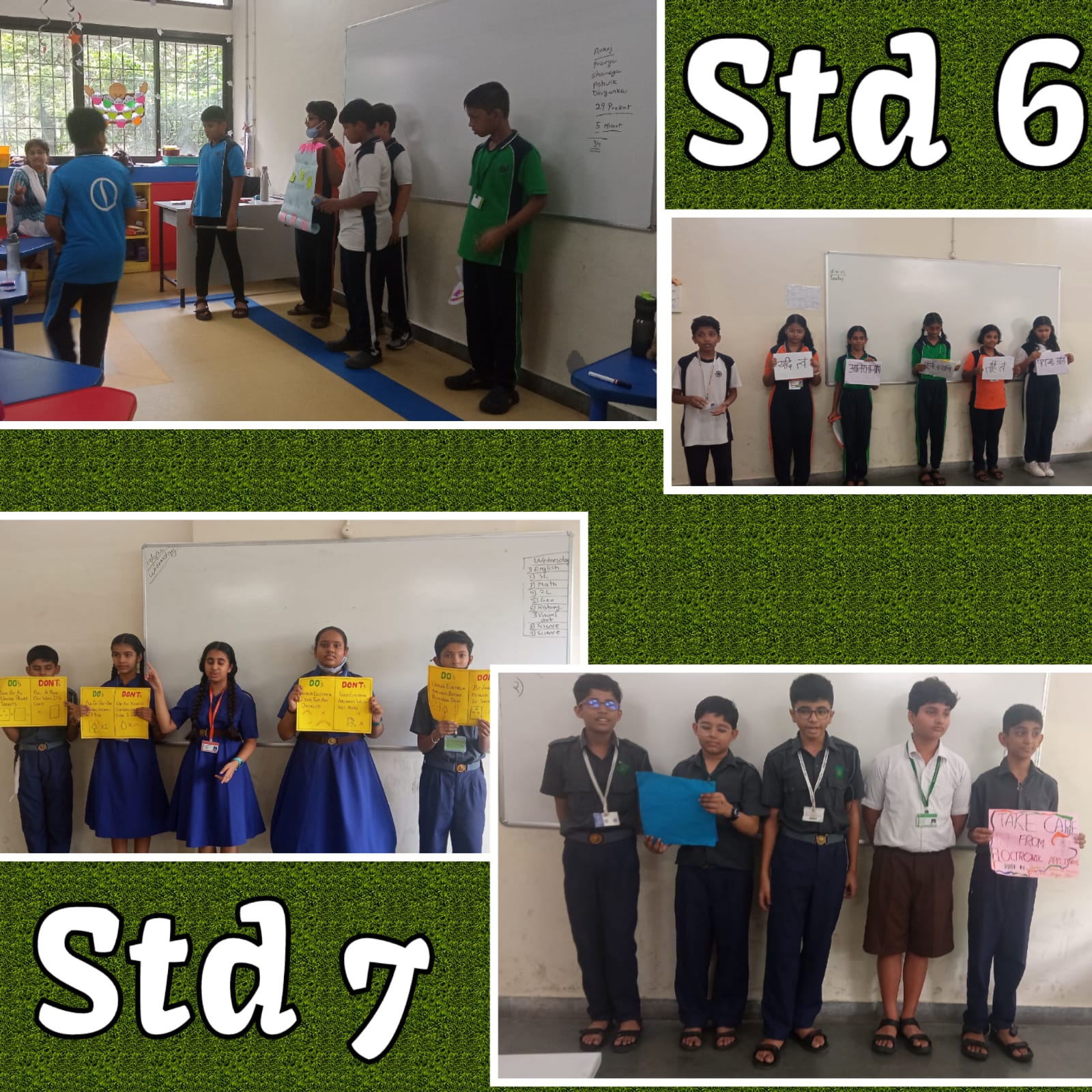 Class 5, 6 and 7 students enlightened the entire school through presentation and dramatisation about road safety, food habits, safety to be followed while bursting crackers and safety to be followed while handling electrical appliances.