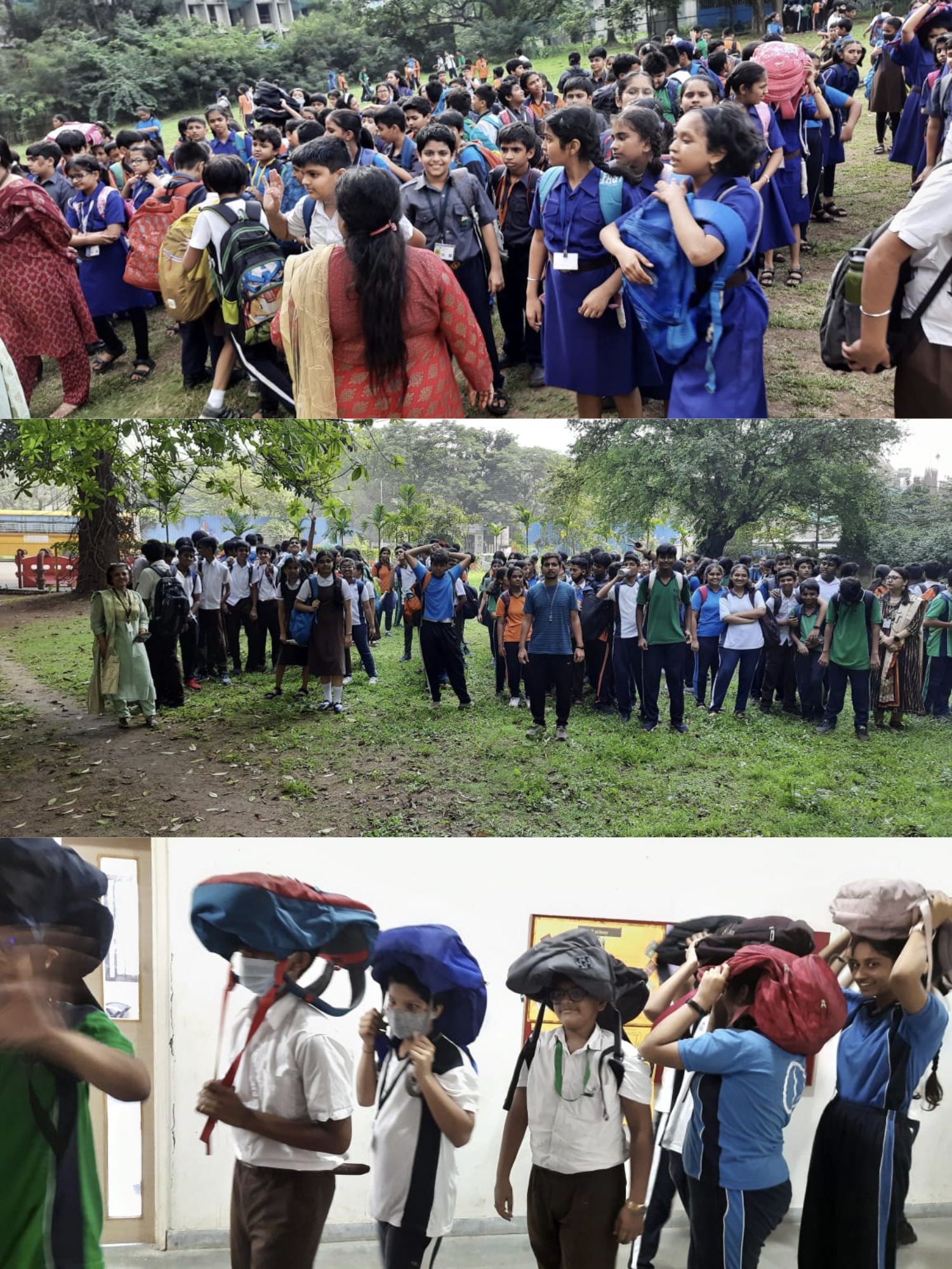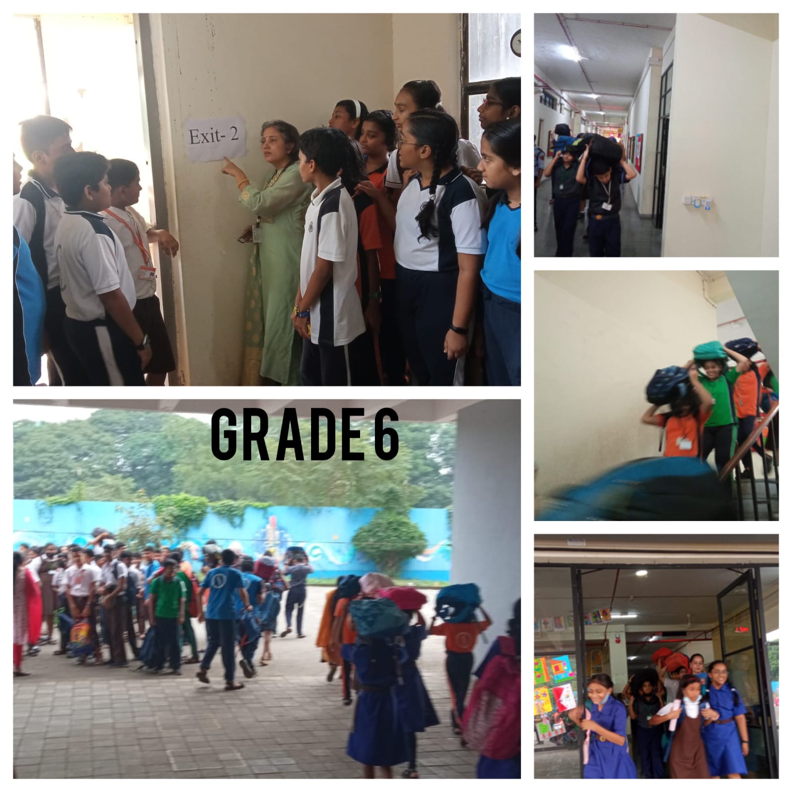 A mock safety evacuation drill was executed for the entire school to create awareness and preparedness during calamities. The students were trained to be alert, quick and responsible, follow instructions, maintain calm and avoid panic to avert stampede and casualties. The staff members positioned themselves at pre decided vantage points to guide and assist the students. The students quickly moved out in proper lines, covering their head with their bags. They were evacuated from the school and assembled at the ground. Students were trained to reach the safe designated areas allocated for each class in case of any emergency. Head count was done by the class teachers to ensure the presence of everyone. Special training has been imparted to the staff members to handle crisis and give first-aid relief if required. The main aim of the drill was to build courage and confidence amongst students.