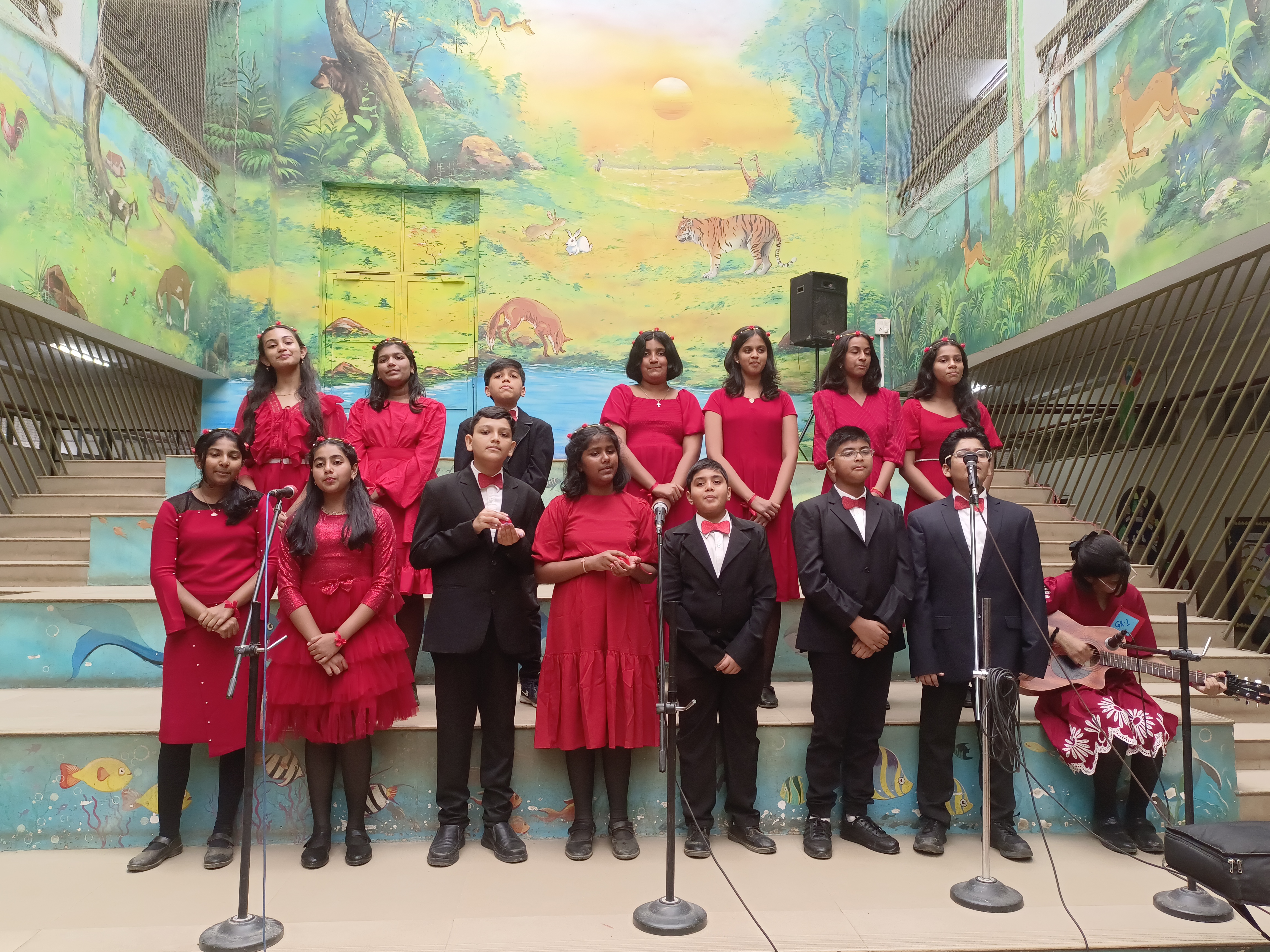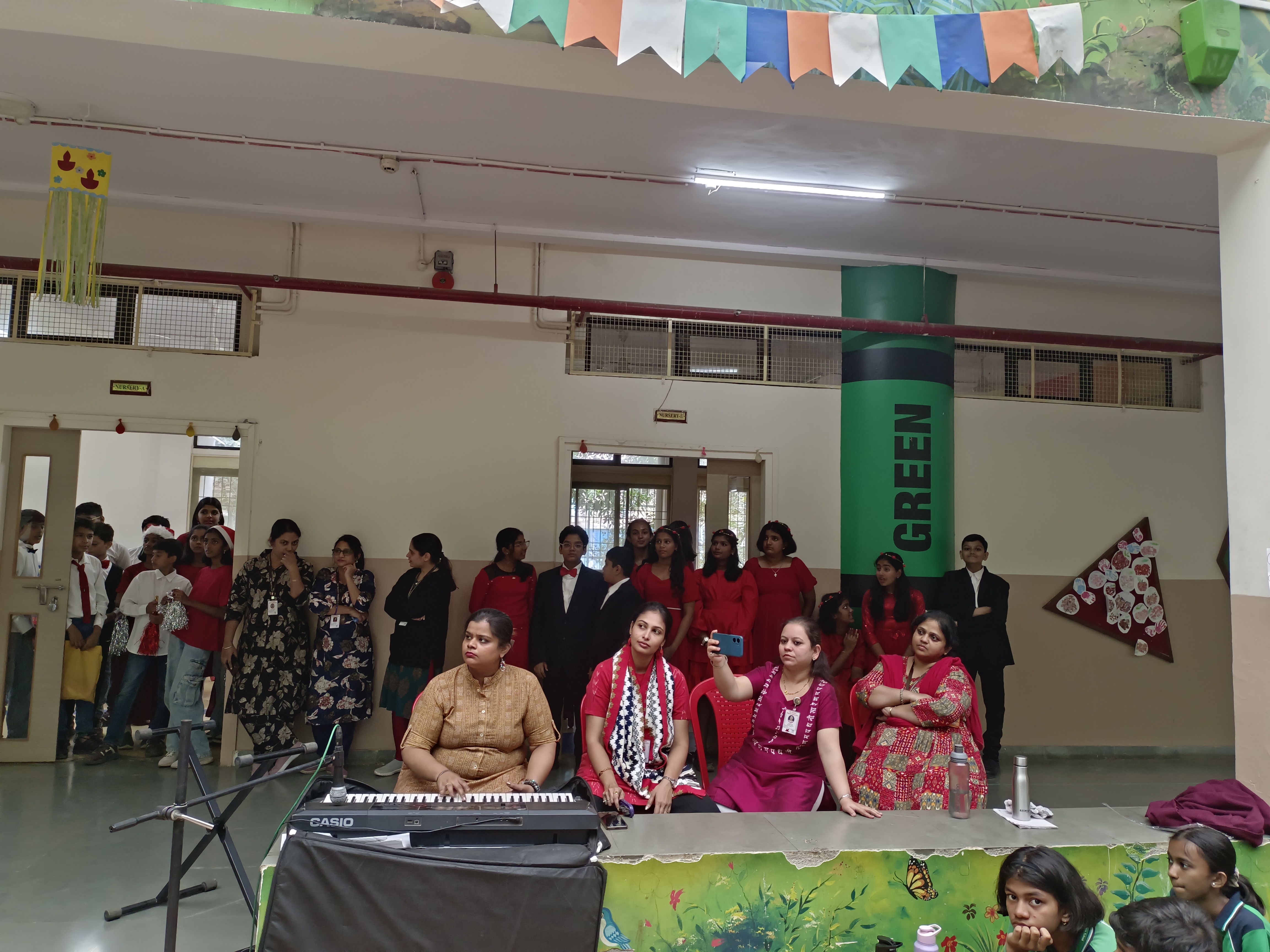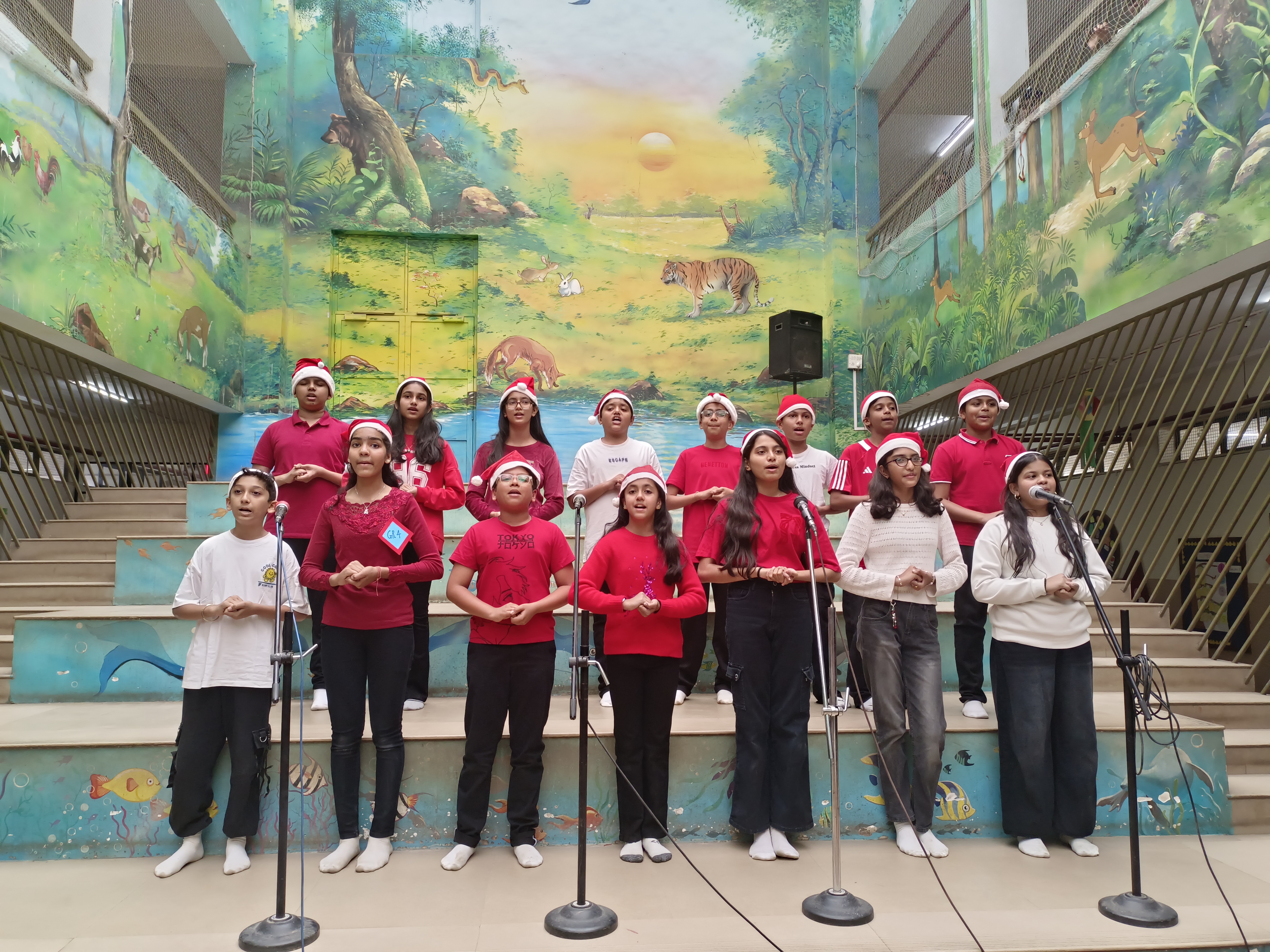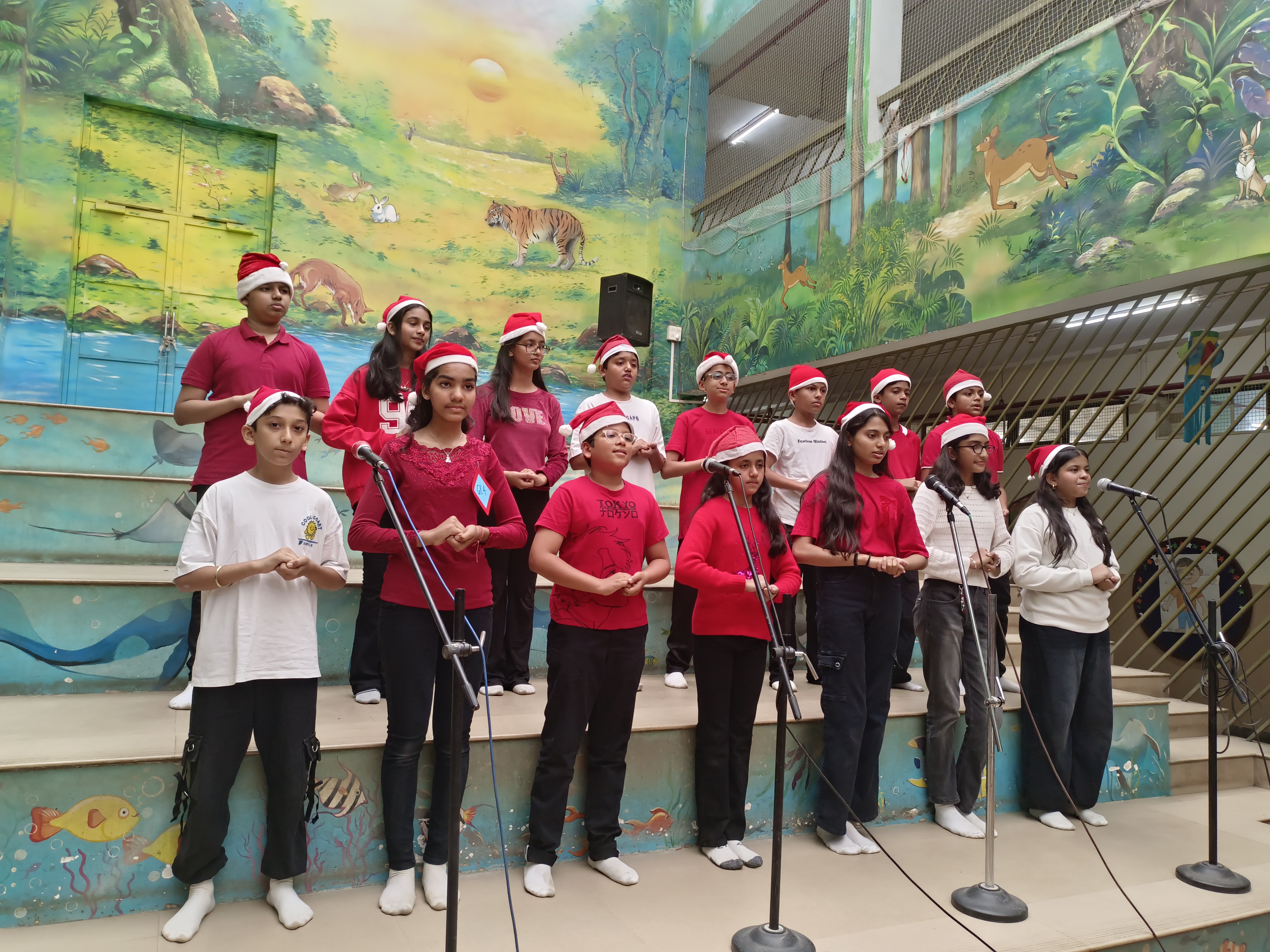 The Std. 7 students of Smt. Sunitidevi Singhania School celebrated Christmas with a carol‑singing competition. The participants were divided into four groups—Vidhya, Himachal, Yamuna, and Ganga—each delivering a captivating performance that delighted the principal, the judges, and the audience. Ganga secured first place, while Vindhya earned second. The event filled the school with festive cheer and created wonderful memories for all involved.