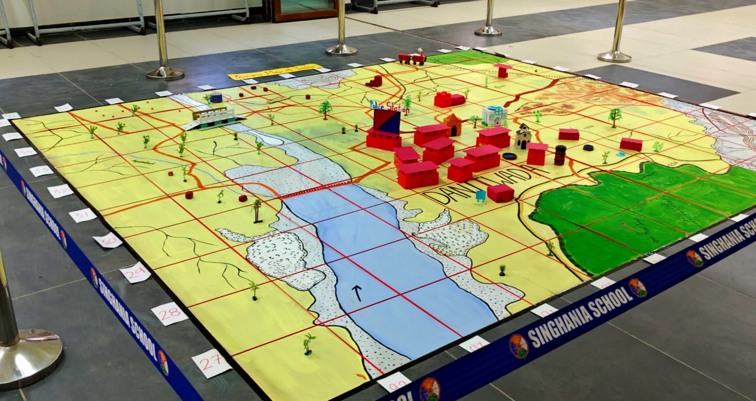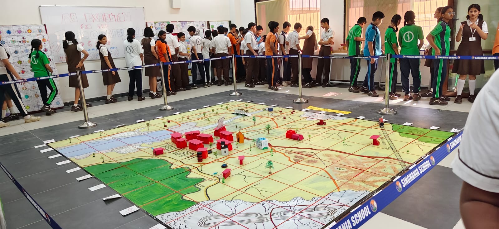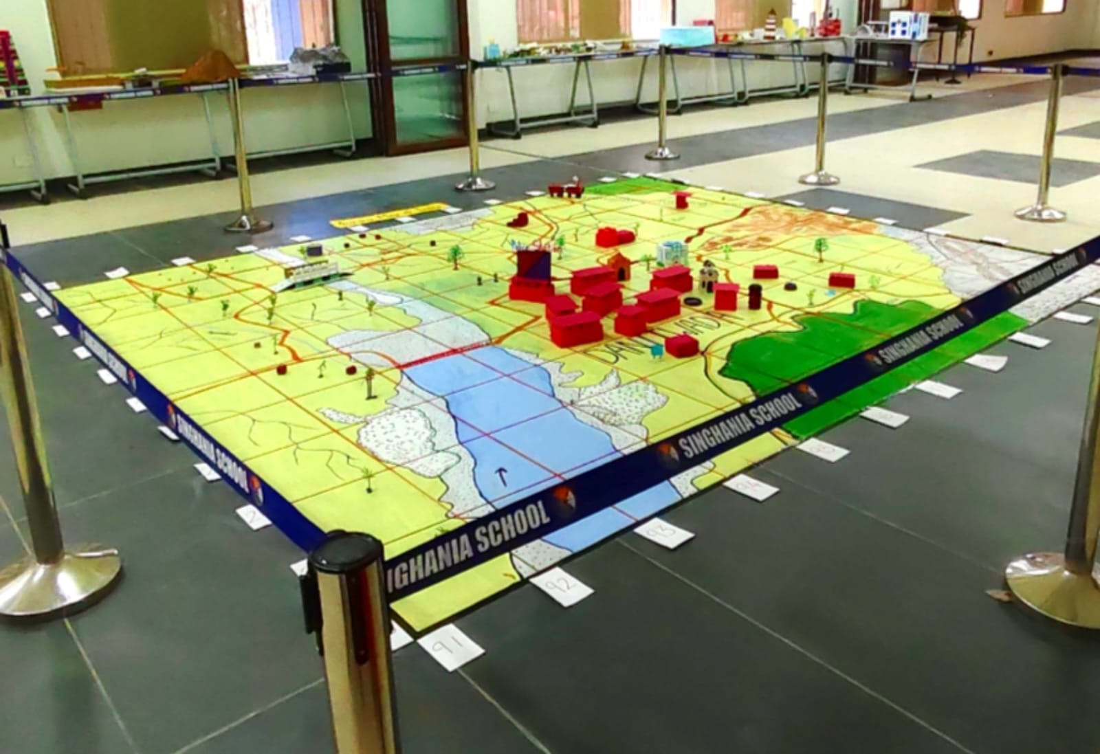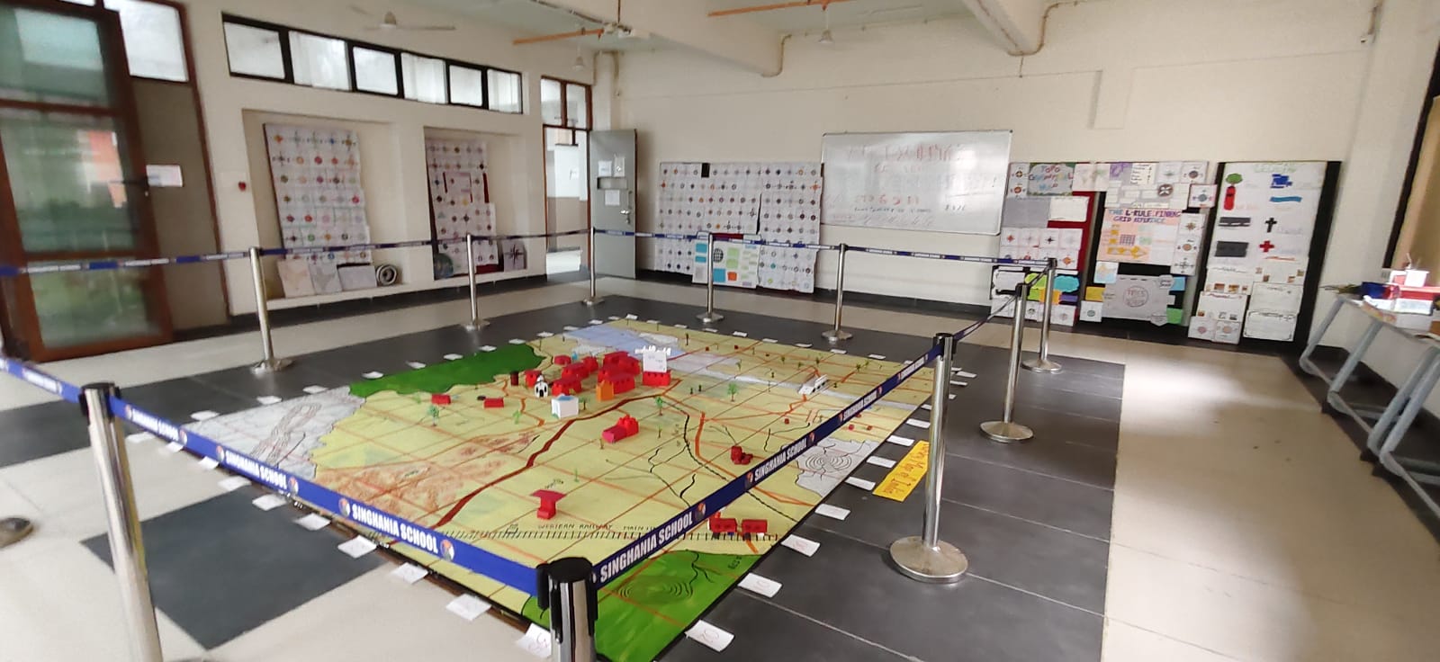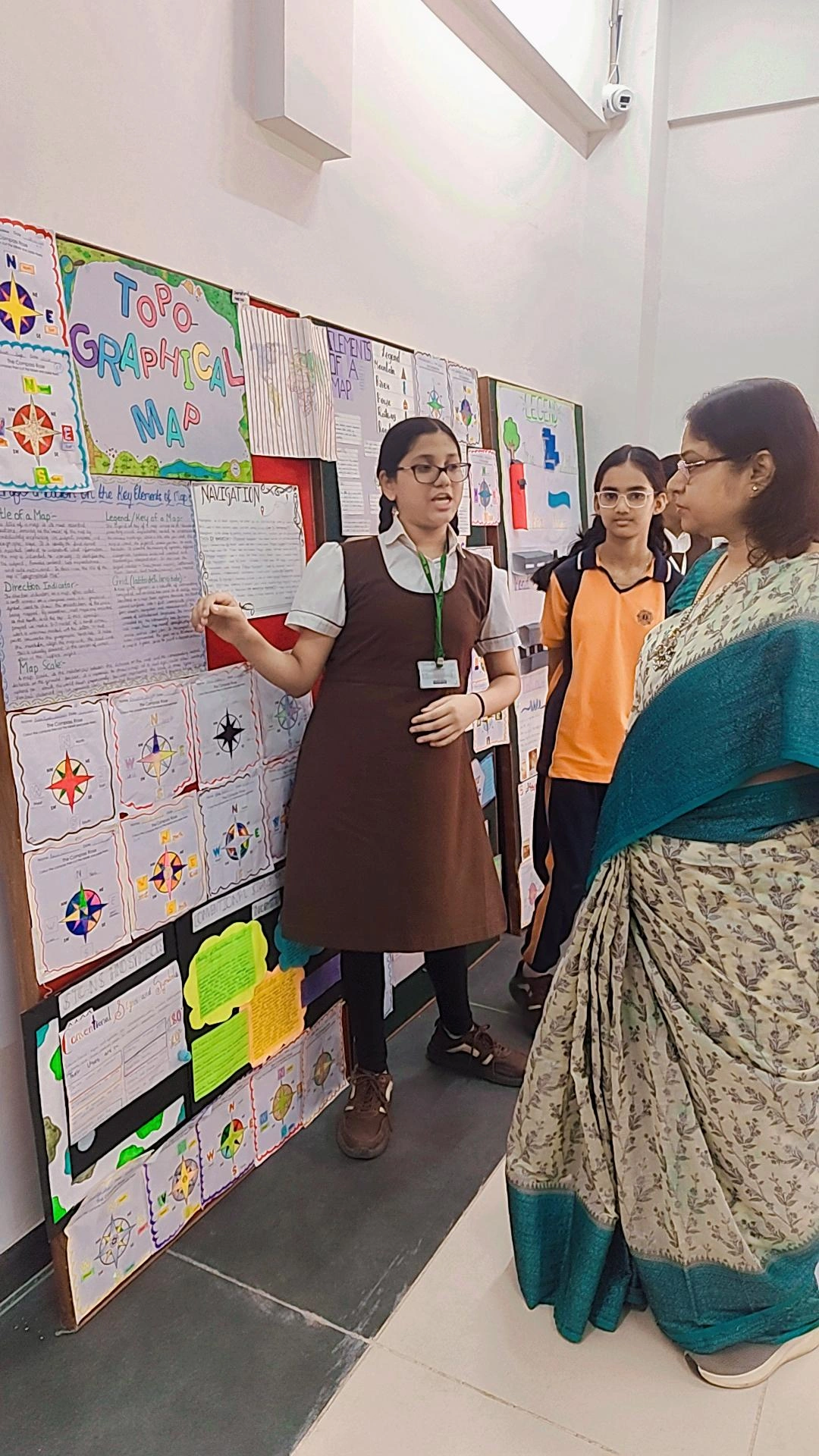 'Topography Unplugged' The school recently organized an impressive Topography Exhibition for the students showcasing their understanding and talent in the subject of geography. The exhibition was thoughtfully arranged to provide an immersive learning experience about topographical features and maps. One of the highlights was an entire floor dedicated to a meticulously painted topography map. This large-scale representation depicted various geographical elements such as symbols, contour lines, settlements, over bridges, post offices, temples, plains, deserts, and rivers. Every detail was carefully curated to give students a realistic view of a typical topographical map, emphasizing the importance of symbols, conventional signs and contour lines in understanding terrain variations. Students of Grade 6 displayed their talents by creating posters explaining key concepts like latitude, longitude, grid systems, the International Date Line, and cardinal directions. Their work helped students grasp the fundamental elements of map reading. Grades 7, 8 and 9 collaborated in groups to prepare physical models and samples illustrating various topographical features. These included models of temples, contour lines, railway lines, plateaus, and valleys. Their practical exhibits complemented the visual map and provided a hands-on understanding of different landforms. The exhibition was inaugurated with great enthusiasm by our very own esteemed mentor, Mrs. Gladys Cabral. She appreciated the students' efforts and commended the teachers for their dedication in making the exhibition a grand success. All students from grades 6 to 10 visited the exhibition, observing and learning about the significance of topography in understanding Earth's physical features. The event was a collaborative effort between the Geography team and the Art department, whose close coordination ensured the exhibition's success and created a memorable educational experience.