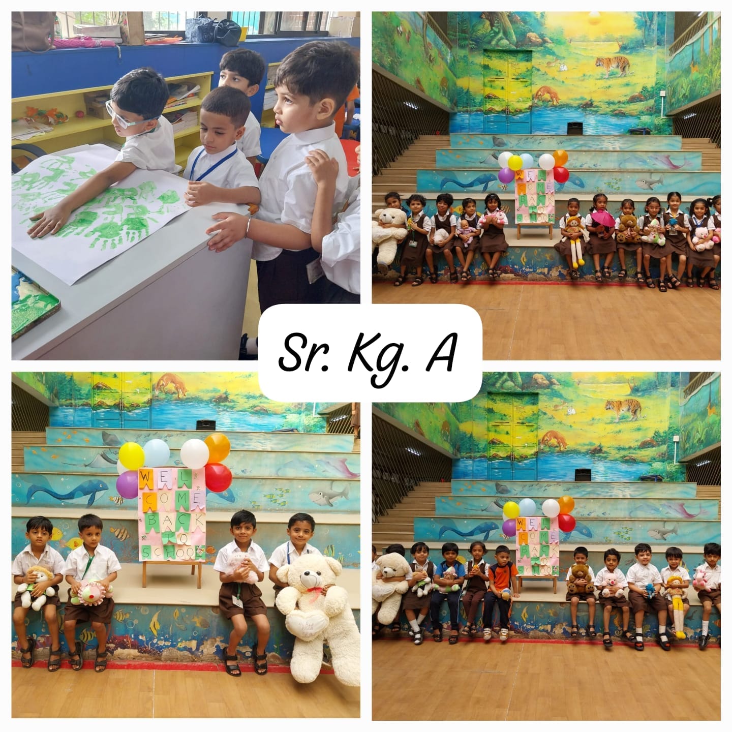 The school buzzed with excitement as children returned after the summer break, filling the hallways with laughter and happy voices. Teachers greeted them in the classrooms with cheerful smiles, high fives and warm loving hugs. To make the first day even more special, a fun group activity was held that encouraged values like teamwork, sharing, and supporting one another. The day’s highlight was the vibrant welcome display where children enjoyed taking photos with their friends, creating joyful memories to start the new school year. Our Senior KG students had a blast making their mark with the palm printing group activity showcasing their creativity and created a colourful memory to cherish..! ��