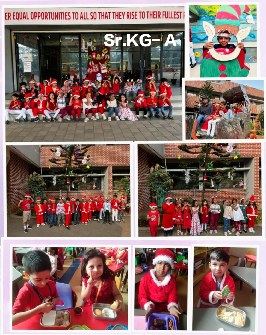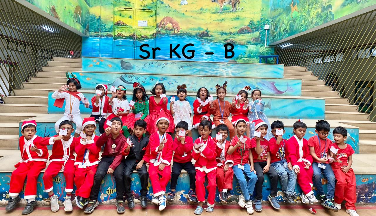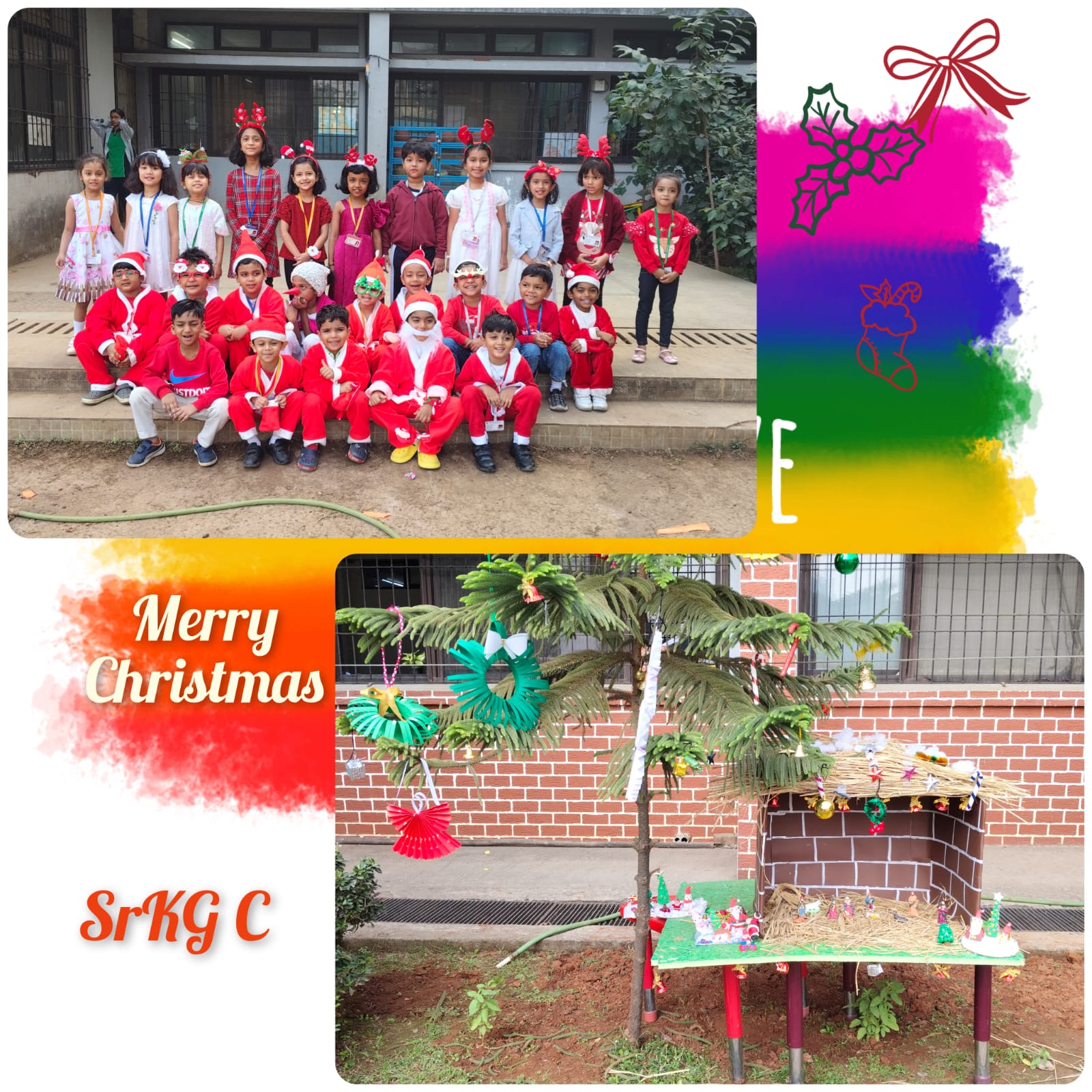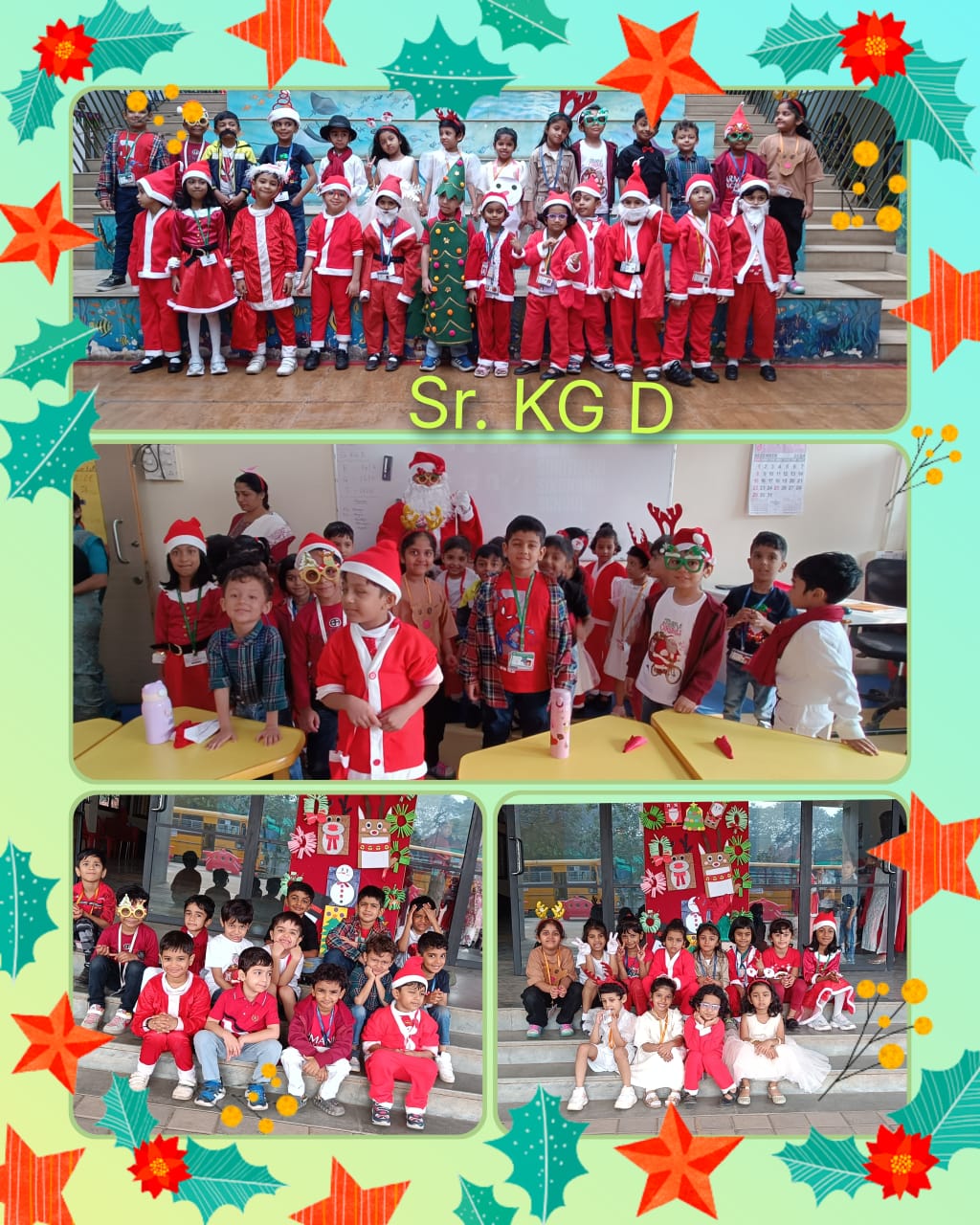 Our school radiated festive cheer as we celebrated the enchanting magic of Christmas. The joy and excitement of the season filled every corner, and our little ones brought the celebration to life with their boundless enthusiasm and charm. The Sr. KG children looked absolutely delightful in their Christmas-themed party attire. Dressed as Santa Claus, reindeer, snowmen, and other beloved holiday characters, they beautifully captured the spirit of the season. Adding to the festive joy, they brought along Christmas favorites such as plum cakes, cookies, and muffins. Each child also carried back home a lovingly crafted Santa face as a treasured keepsake of the celebration. The Jr. KG and Nursery children added a splash of festive colour with their vibrant outfits in red, green, and white. Their cheerful smiles and lively energy infused the school with warmth and happiness, perfectly embodying the true essence of Christmas. The beautifully decorated Selfie Stand was an instant hit among both the children and the teachers. Everyone gathered around to capture joyful moments, creating precious memories that will be cherished for years to come. Christmas celebrations are truly magical, and no celebration is complete without the beloved Santa Claus and his enchanting carriage. The highlight of the day was Santa’s surprise visit to the children’s classroom, where he spread joy and festive cheer all around. The children’s excitement reached new heights when they were given the unforgettable opportunity to ride with Santa in his beautifully decorated carriage, making the day even more special and memorable. This celebration was not just about fun and festivities but also an opportunity to impart the deeper meaning of Christmas to our young learners, the values of sharing, kindness, and spreading love. The school echoed with laughter and delight, creating an unforgettable, heartwarming festive atmosphere. Wishing all our little stars a Merry Christmas filled with endless love, joy, and wonder.