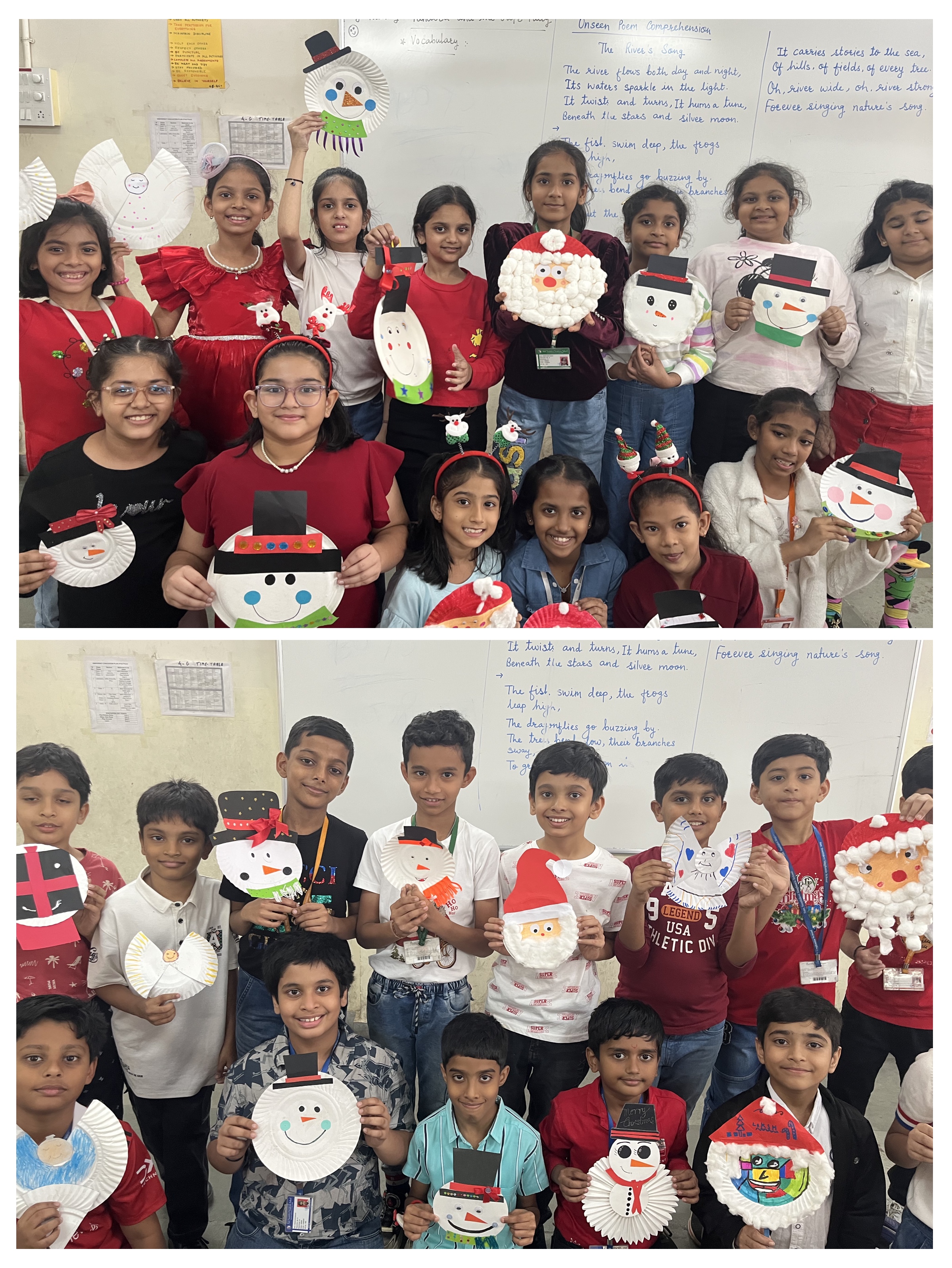 Class 4 students at Smt. Sunitidevi Singhania School celebrated Christmas with creativity by making cheerful Santa crafts. The activity filled the day with joy and festive spirit, creating unforgettable memories.