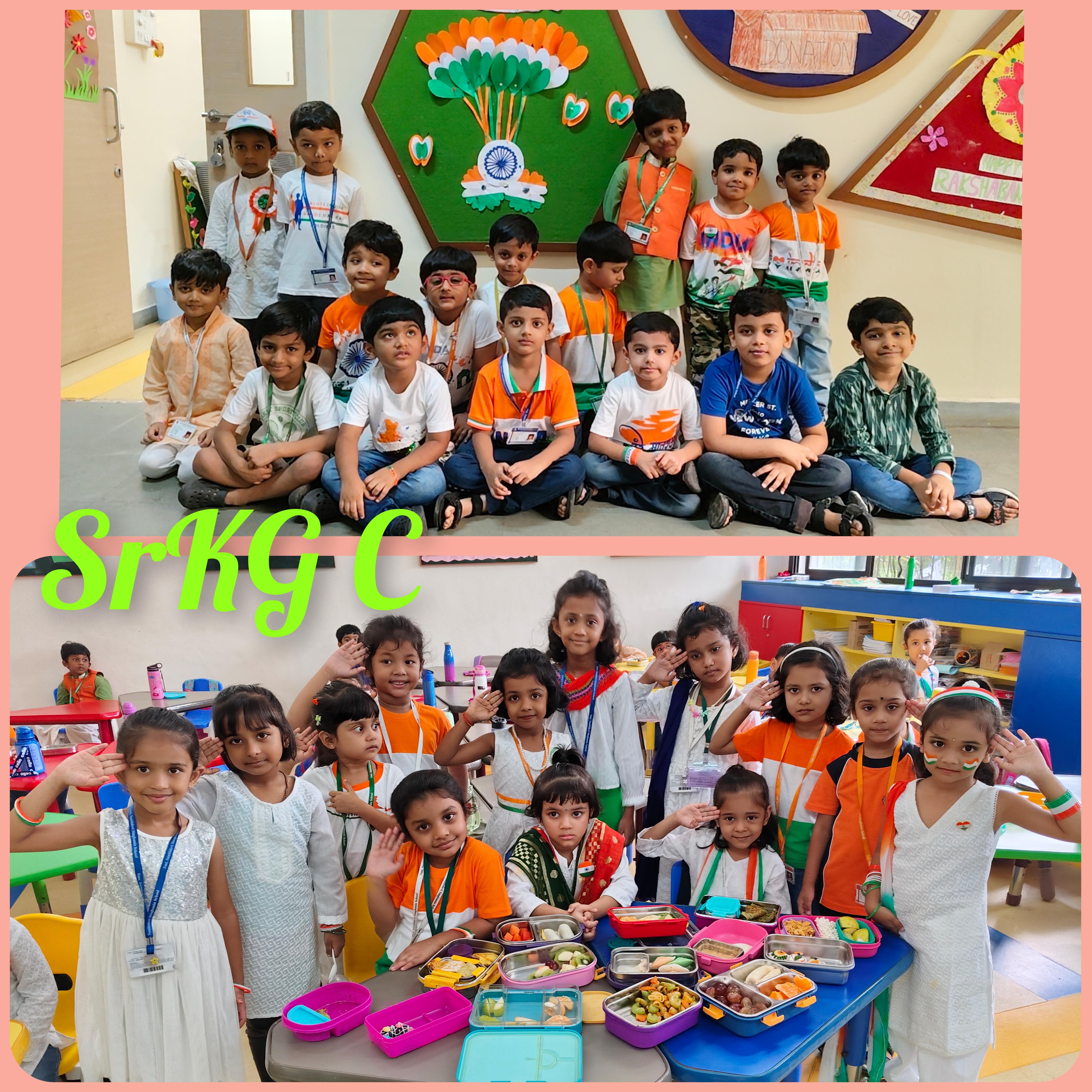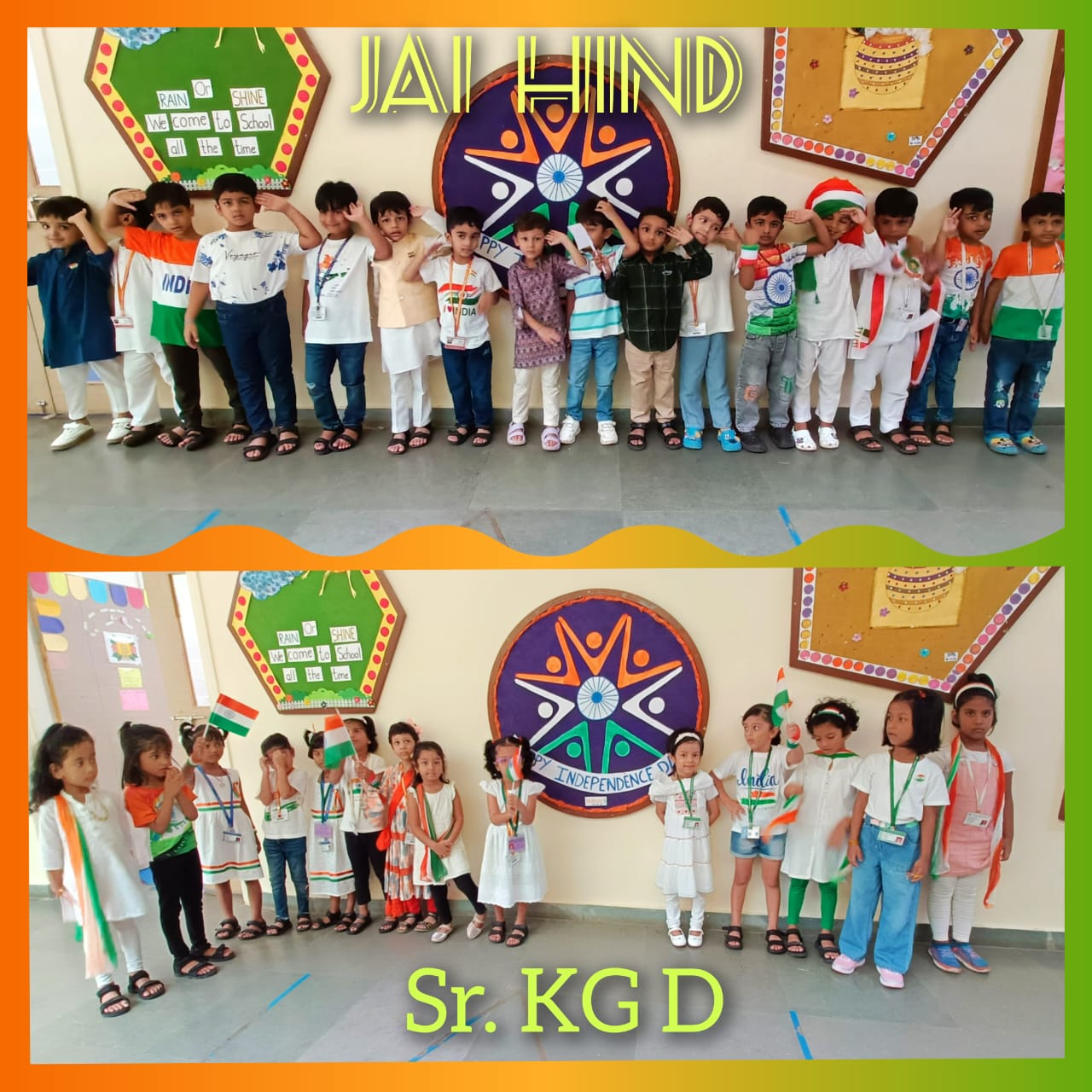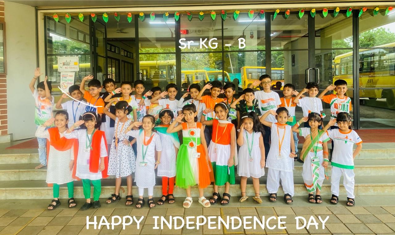 The tiny tots from Pre - Primary celebrated Independence Day with great joy and patriotism. Dressed in tri – colour attire, the students portrayed the value of ‘One Nation, One Heart, United from the Start.’ Love for the country was very much in the air. Each child showed the visual awareness for the flag. The joy and pride was clearly visible on the faces of Nursery students when they got the ‘Tricolour’ painted on their hands. This activity made the little ones aware of the tricolours of our National Flag. The students from Jr.KG came dressed as freedom fighters. The corridors of the school was filled with their power packed slogans and speech. It reminded us of the sacrifices made by them for their motherland. The Sr. KG students also joined in the festivities by practising the ‘Patriotic Yoga.’ By doing these poses, the little yogis learnt to move their body in rhythm. The soulful melodies helped to develop a sense of patriotism and pride for the nation in the young learners. Such celebrations in school instil a sense of unity, respect, oneness among the young generation. The celebration of our freedom will continue for years to come and our pride for our motherland will grow stronger day by day for these little ones. JAI HIND