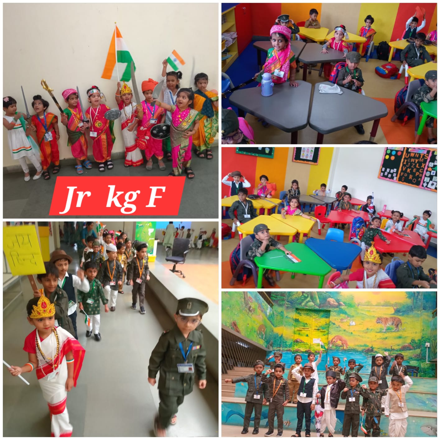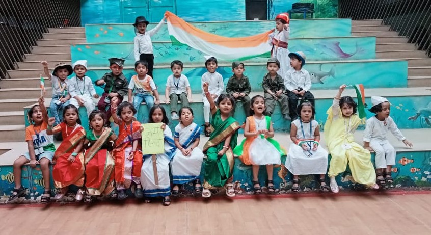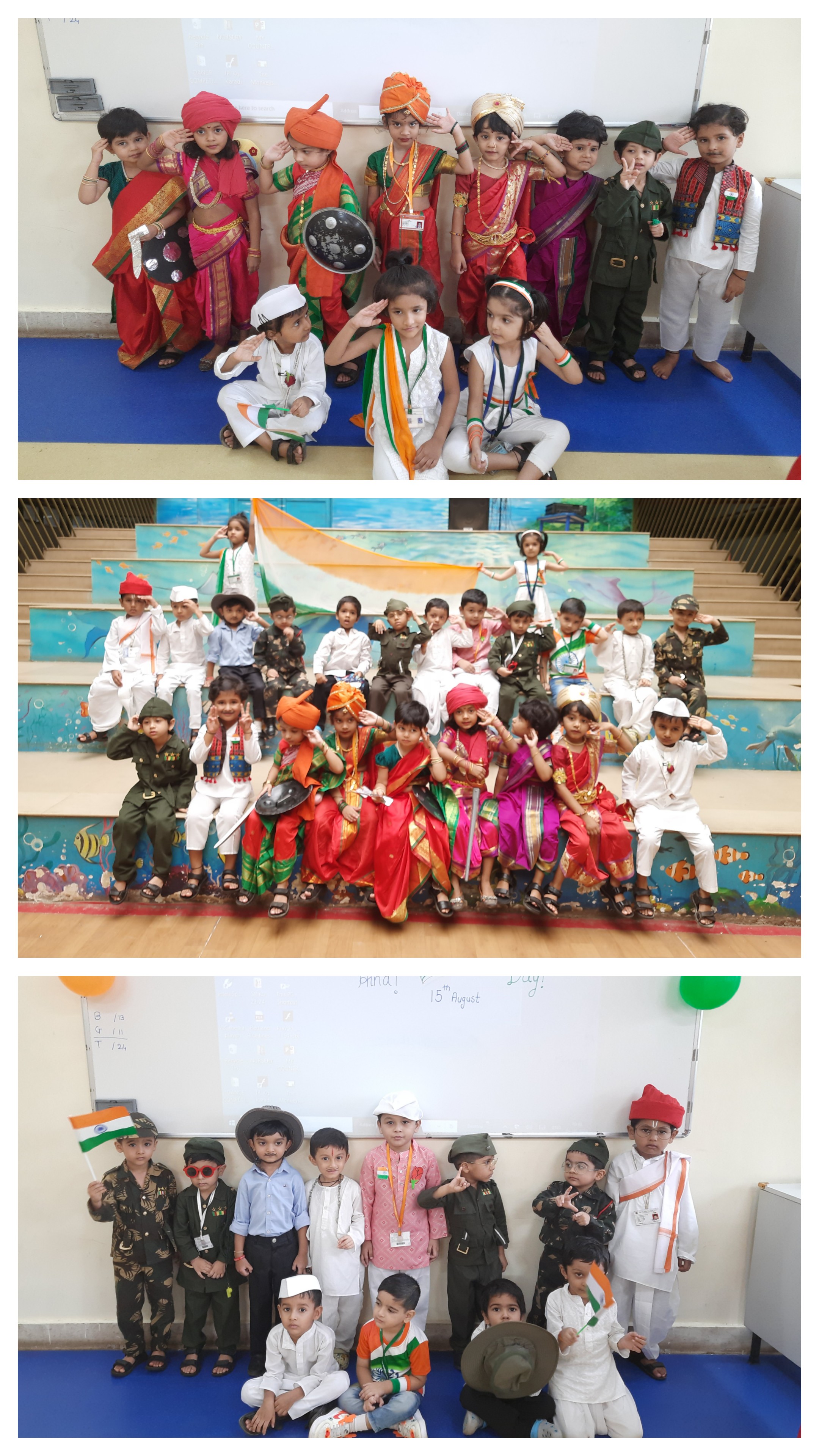 The tiny tots from Pre - Primary celebrated Independence Day with great joy and patriotism. Dressed in tri – colour attire, the students portrayed the value of ‘One Nation, One Heart, United from the Start.’ Love for the country was very much in the air. Each child showed the visual awareness for the flag. The joy and pride was clearly visible on the faces of Nursery students when they got the ‘Tricolour’ painted on their hands. This activity made the little ones aware of the tricolours of our National Flag. The students from Jr.KG came dressed as freedom fighters. The corridors of the school was filled with their power packed slogans and speech. It reminded us of the sacrifices made by them for their motherland. The Sr. KG students also joined in the festivities by practising the ‘Patriotic Yoga.’ By doing these poses, the little yogis learnt to move their body in rhythm. The soulful melodies helped to develop a sense of patriotism and pride for the nation in the young learners. Such celebrations in school instil a sense of unity, respect, oneness among the young generation. The celebration of our freedom will continue for years to come and our pride for our motherland will grow stronger day by day for these little ones. JAI HIND
