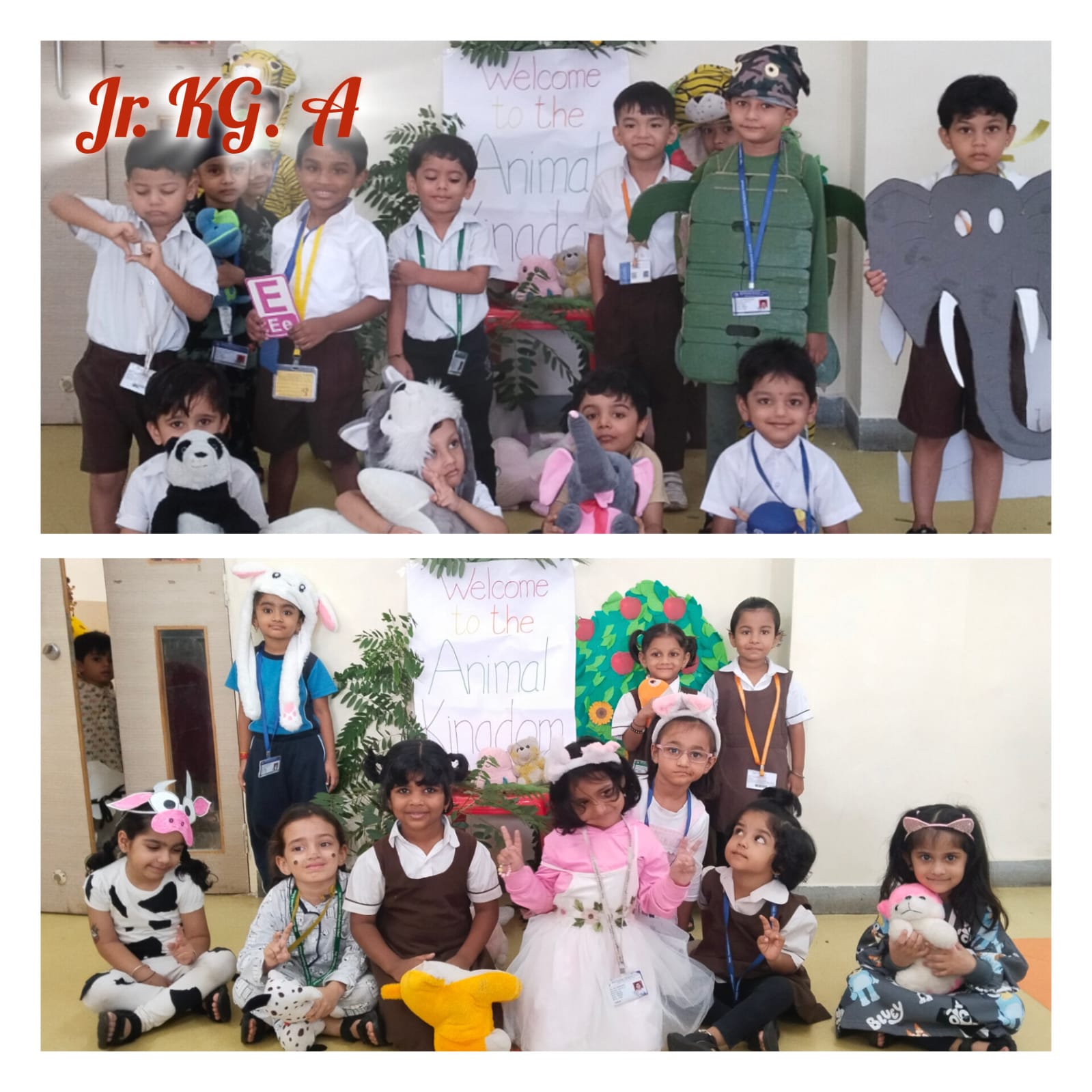 The tiny tots from Jr. KG took us all for an exciting Jungle Safari through the Animal Kingdom Role Play. Dressed up as their favourite animals – roaring lions, trumpeting elephants, hopping bunnies, fluttering butteries flies and more – the children brought the jungle to life. With their adorable costumes and innocent expressions, they confidently mimicked animal sounds, movements, and shared interesting facts about the creatures they represented. This activity not only helped them learn about animals and their food habit but also boosted their confidence, imagination, and communication skills. It was a beautiful blend of fun and learning, where our little stars shone brightly in their own unique ways. The classroom echoed with laughter, learning, and a whole lot of love for animals!