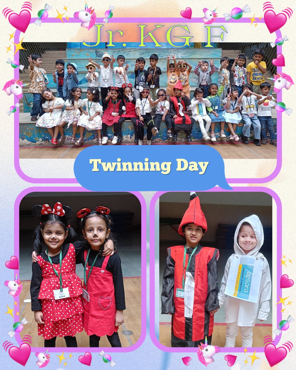 Our Jr.KG journey came to a beautiful and joyful end with smiles, laughter, and lots of happy memories. On the last day of school, our little champs enjoyed a fun-filled celebration with movie time, a rocking dance party, twinning day excitement, and free play time with their friends. Dressed in adorable twinning outfits, they laughed, danced, and created memories that will stay in their hearts forever. The sparkle in their eyes during the dance party and the giggles during movie time truly made the day special. To make this day even more memorable, each child received a special storybook from their beloved teacher — a small gift filled with big love, encouraging them to keep reading, imagining, and dreaming. As our Jr.KG stars step into Sr.KG, we feel proud of how much they have grown — from tiny scribbles to confident learners, from shy smiles to bold expressions. Wishing our little ones endless success, happiness, and bright beginnings in Sr.KG!