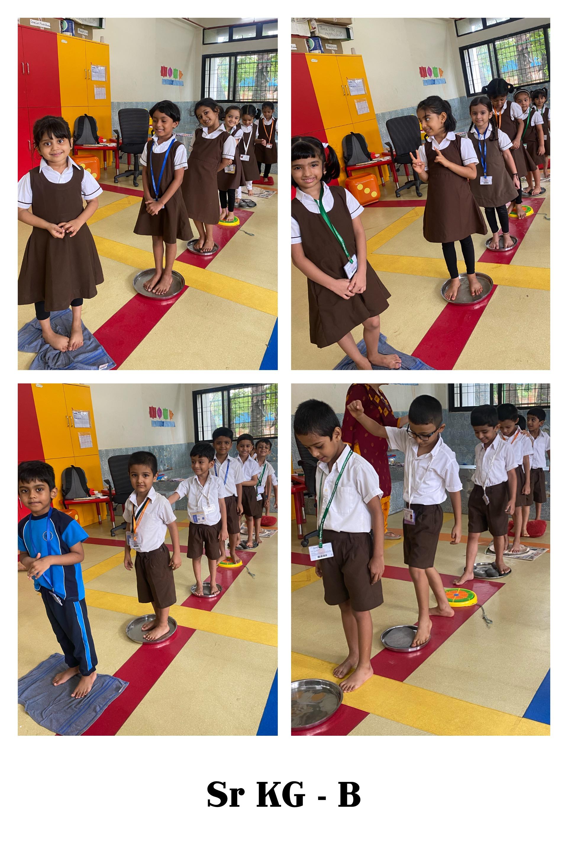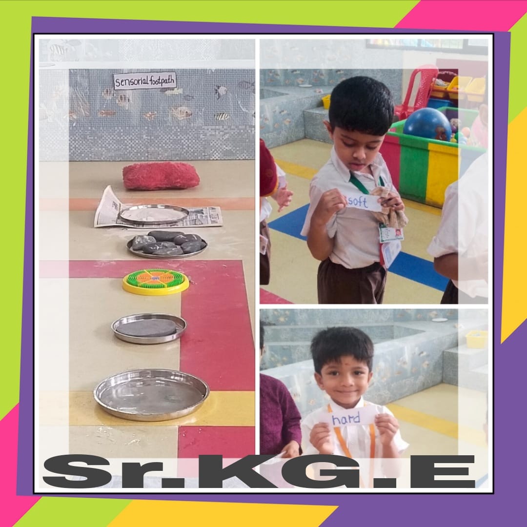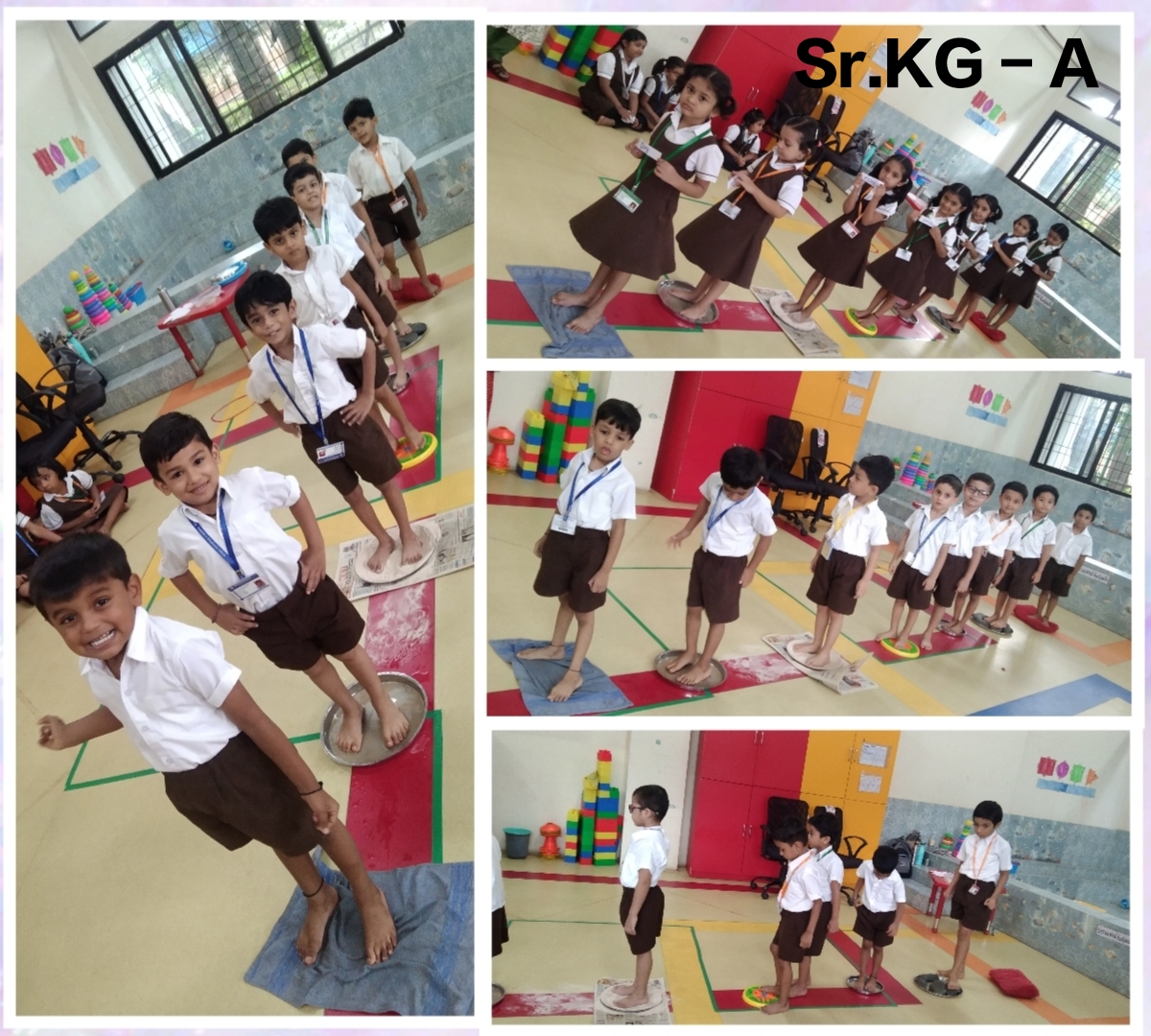 Sensorial activities for children encourage them to use their senses to explore their environment and discover new things. It also enhances their problem solving and critical thinking skills. The said activity allowed them to feel different textures and temperatures like warm or cold. The students were provided with different textures and were asked to touch the surface with their feet and describe how it feels. Such fun learning experiences ignite the little scientist within them urging them to more exploration.