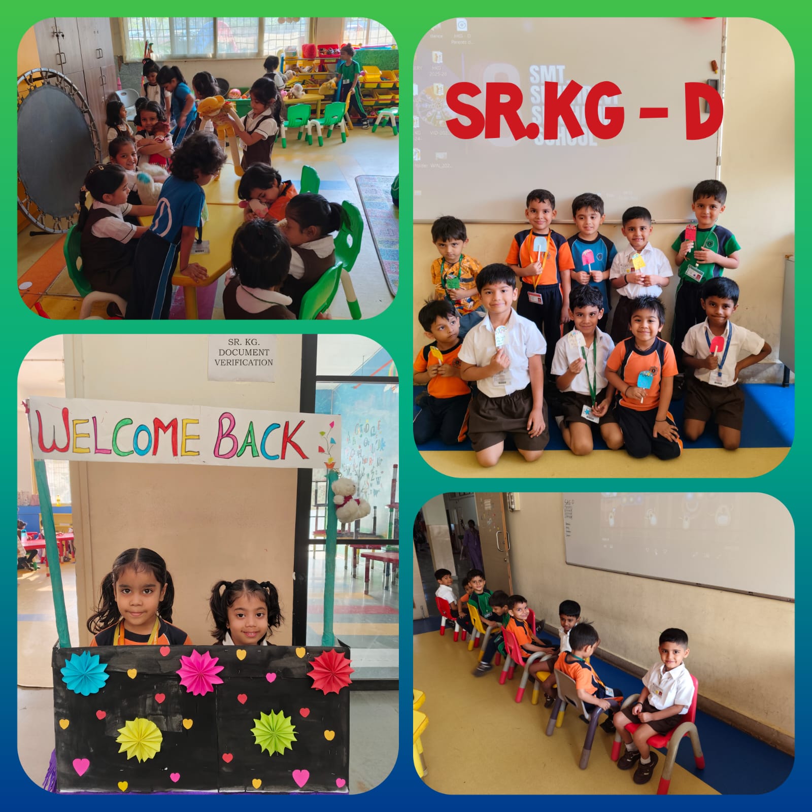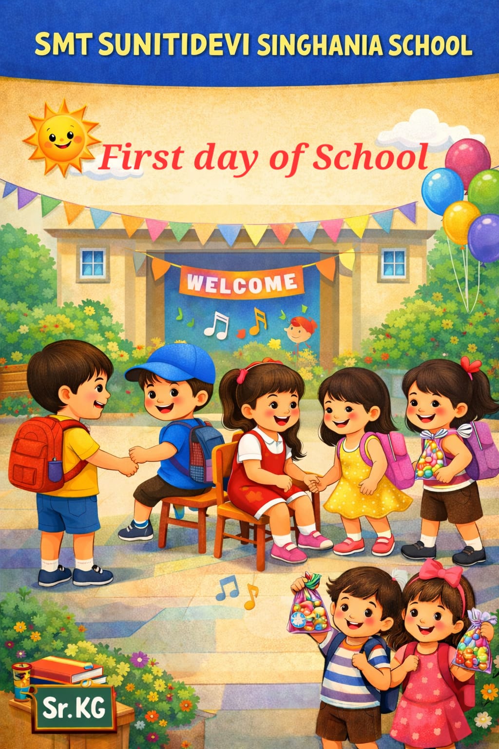 The first day of school for our Sr. KG children was full of smiles and excitement. πβ¨ The little ones walked into school with curiosity and were warmly welcomed by their teachers with cheerful greetings and loving hugs. π The day became even more fun with a lively game of musical chairs πΆπͺ where the children laughed, danced, and enjoyed every moment. The kids also had a wonderful time clicking pictures at the cute selfie stand πΈ, capturing their happy first-day memories. To end the day on a sweet note, each child received a delightful candy takeaway. It was a wonderful start to a year filled with learning, friendship, and happy memories. π