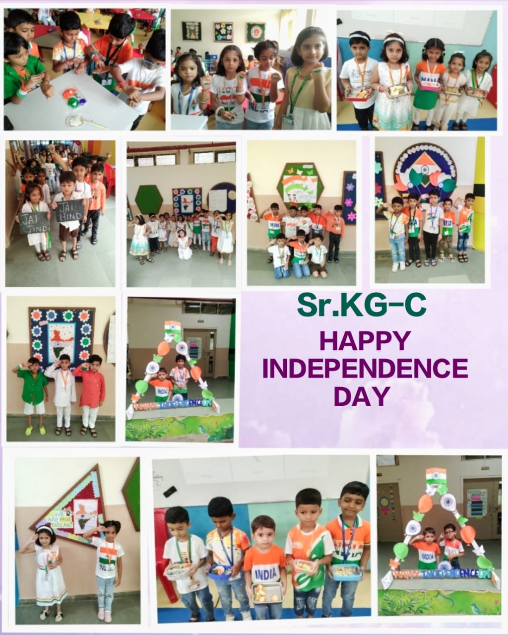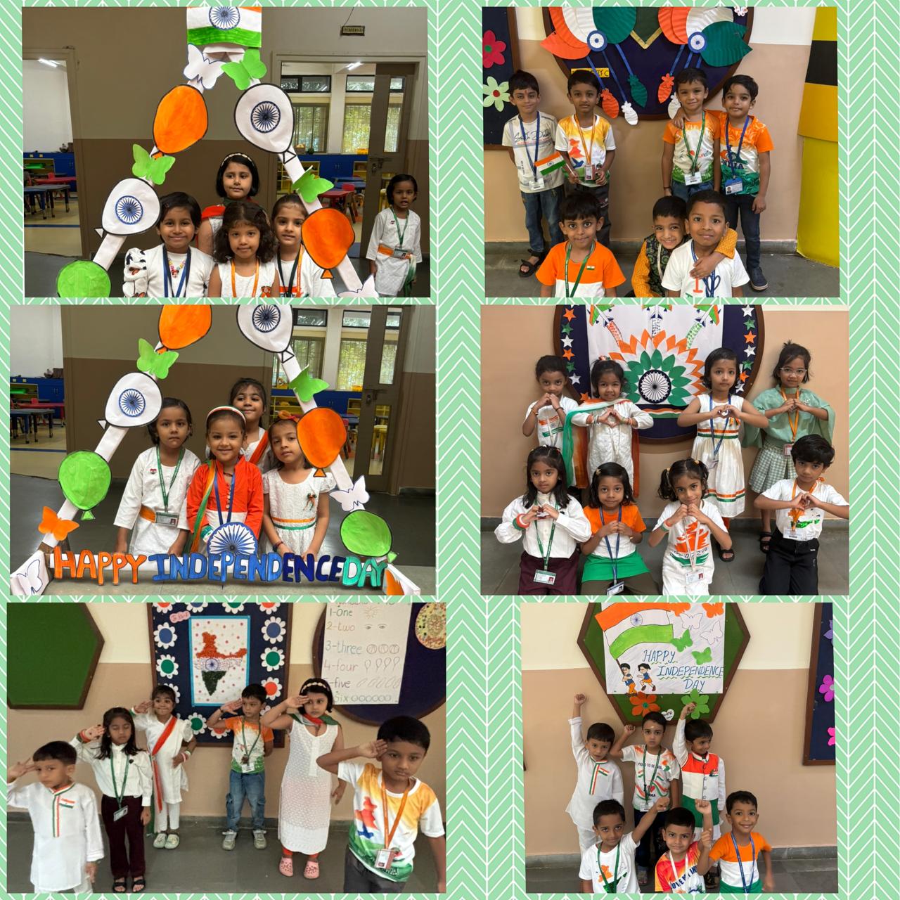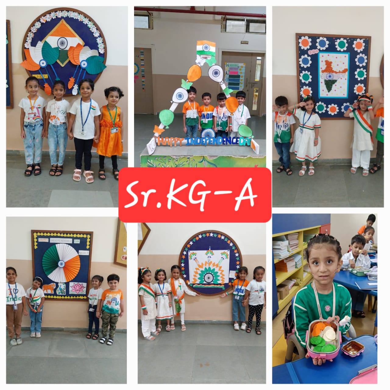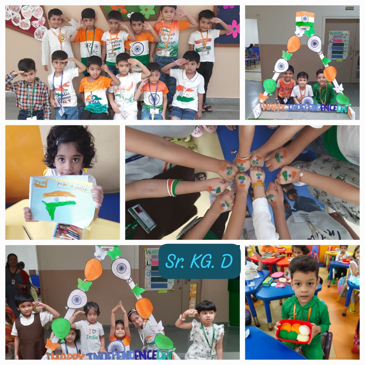 " India, India, land of pride, Tricolor flag, waving high inside...! Freedom in our hearts, joy in our soul, Happy Independence Day, let's make it whole..! On 14th of August, our Senior KG had a blast celebrating Independence Day...! The children dressed in tricolor attire and participated in various activities...We sung patriotic songs and dance that got everyone in the mood for celebration...! The highlight of the day was the tricolor tiffin, where our children brought in food with orange, white, and green colors - it was a treat for the eyes...! The fun just didn't stop there...! The children also got tricolor tattoos on their hands and participated in craft activities making flag with their palms... It was a fantastic celebration that taught our children about Patriotism and National pride in a fun way....Jai Hind