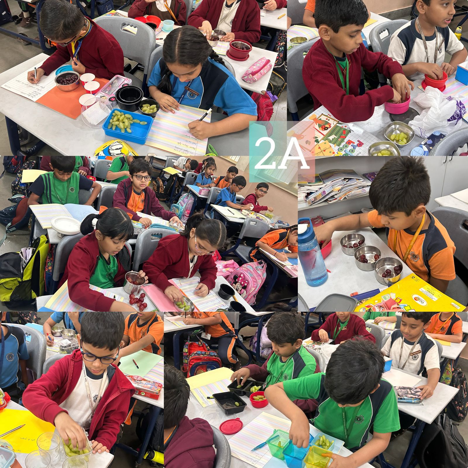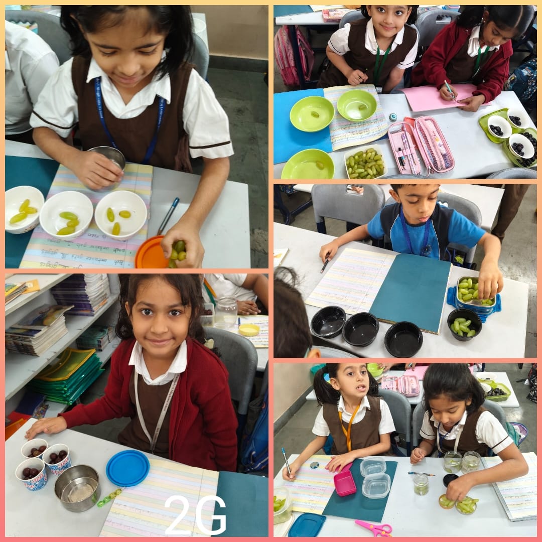 During the Equal Sharing activity, students of Grade 2 enthusiastically participated in a hands-on learning experience using grapes. They solved simple sharing sums by dividing the grapes equally among different groups, which helped them understand the concept in a fun and practical way. The use of real objects made learning meaningful and engaging for the students. Through this activity, students not only learned about equal sharing and basic division but also improved their counting and problem-solving skills. They also understood the importance of fairness and sharing equally in their everyday life. The children just could not wait to eat the grapes later and happily relished the sweet and sour grapes at the end of the activity.